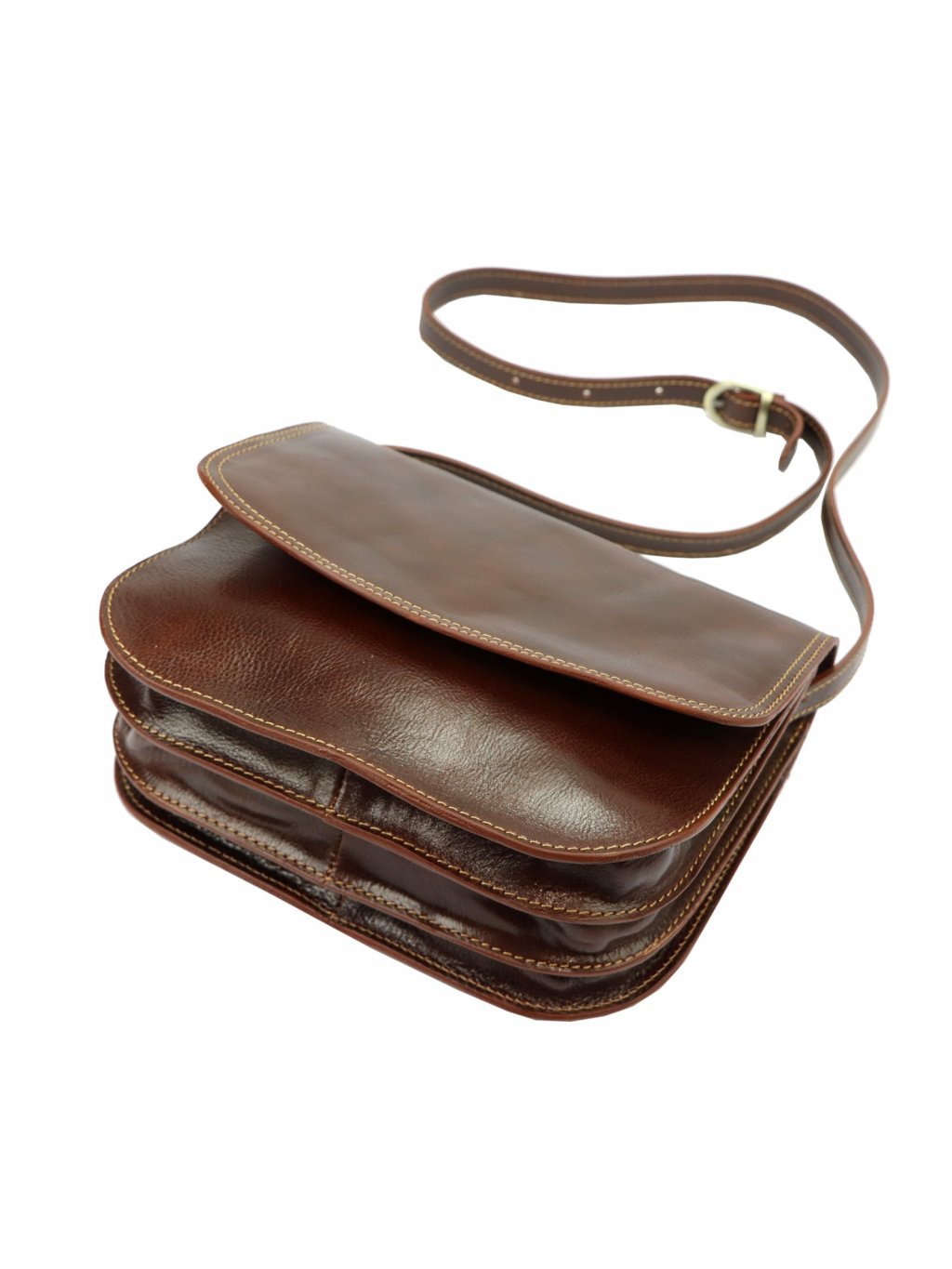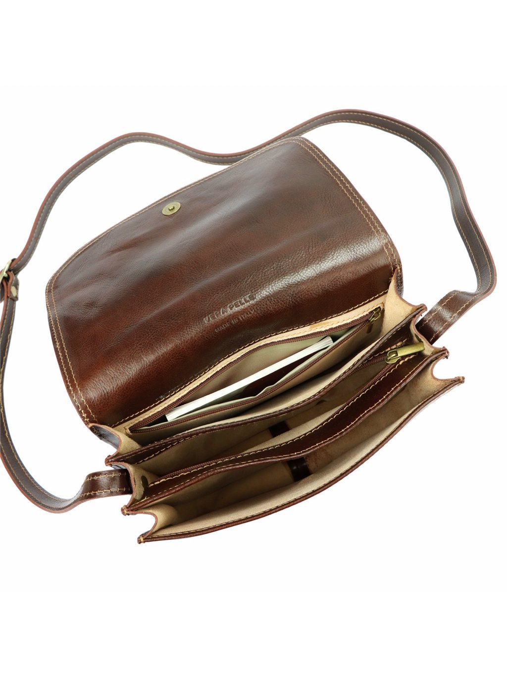 Nadčasová kožená crossbody kabelka Florence z kvalitní italské kůže, která je ideální pro každou ženu, jež hledá eleganci a praktičnost v jednom. Hlavní kapsa se uzavírá klopou s magnetem, což zajišťuje bezpečnost a snadný přístup. Po otevření klopy vás uvítá vnitřní prostor, který je prakticky rozdělen na dvě poloviny větší kapsou na zip, a navíc doplněn menší zipovou kapsou na drobnosti. Na zadní straně kabelky se nachází další kapsa na zip. Součástí kabelky je nastavitelný ramenní popruh pro pohodlné nošení.