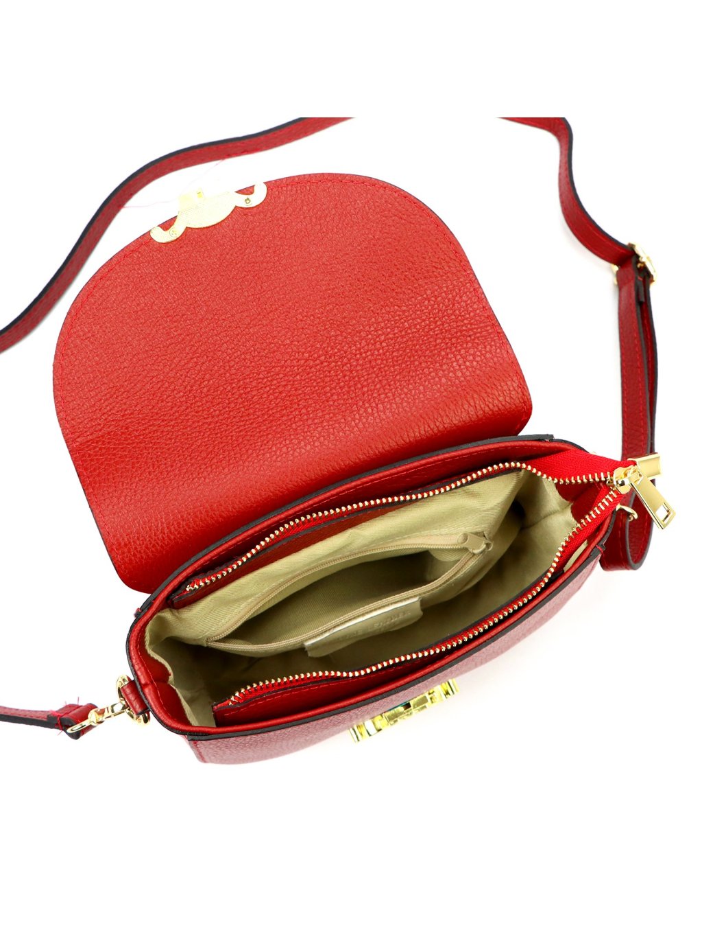 Menší kožená kabelka přes rameno ušitá z přírodní kůže potěší svým nadčasovým vzhledem a praktičností. Vnitřek tvoří jedna hlavní kapsa podšitá látkou, doplněná zipově uzavíratelnou kapsičkou na drobnosti. Bezpečné uzavření zajišťuje kombinace zipu a klopy s ozdobným kovovým zapínáním. Nastavitelný dlouhý popruh umožňuje pohodlné nošení jak na rameni, tak křížem přes tělo.
