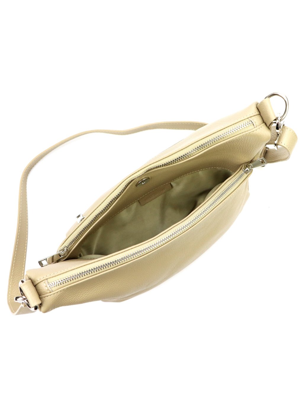 Středně velká dámská kožená kabelka přes rameno značky Luka je navržená pro každodenní nošení i formálnější příležitosti. Kabelka je vyrobená z přírodní kůže a doplněná stříbrným kováním. Hlavní prostor je rozdělený na tři samostatné části, které usnadňují přehledné uložení všech potřebných věcí. Kabelka se uzavírá zipem a na vnější straně má navíc praktickou kapsu na zip pro rychlý přístup k drobnostem. Díky nastavitelnému popruhu se pohodlně nosí přes rameno nebo křížem přes tělo. Moderní a praktický model, který se snadno kombinuje s každodenním i elegantnějším outfitem.