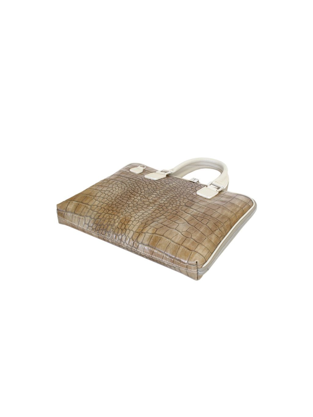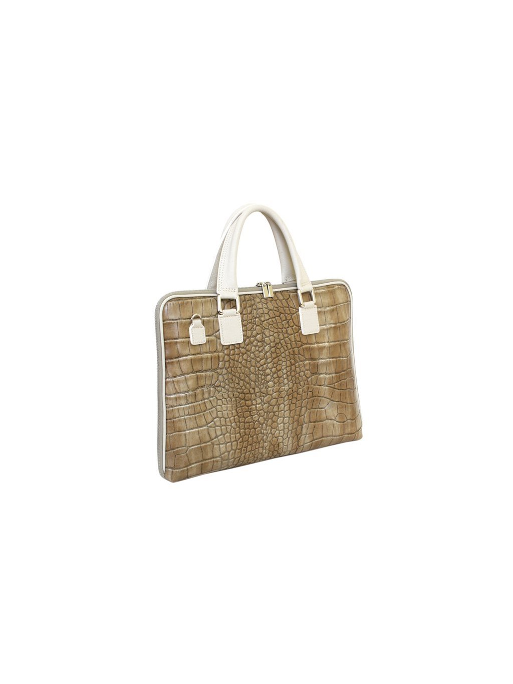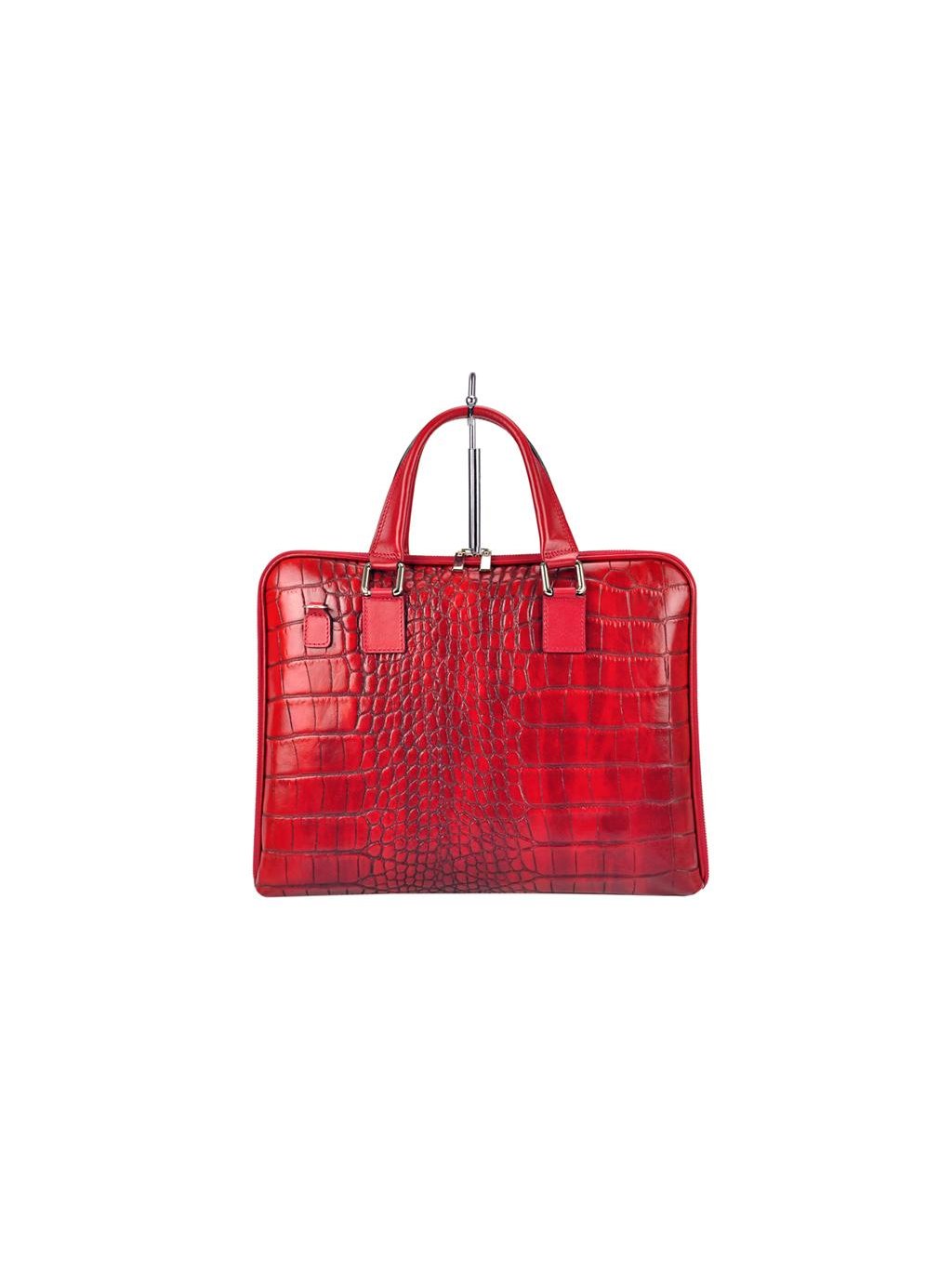 Tato dámská kožená aktovka ušitá z hladké hovězí kůže ve které je vyražený moderní krokodýlí vzor. Výhodou této aktovky je zip, který je po celém obvodu aktovky, proto jde doširoka rozevřít a je velmi přehledná. Aktovka je rozdělena zipovou separací na dvě části. V první části je kapsička na mobilní telefon, ve druhé je praktická kapsička na zip. Aktovka se dá nosit v ruce, na předloktí a díky širokému řemínku se dá nosit pohodlně i přes rameno.