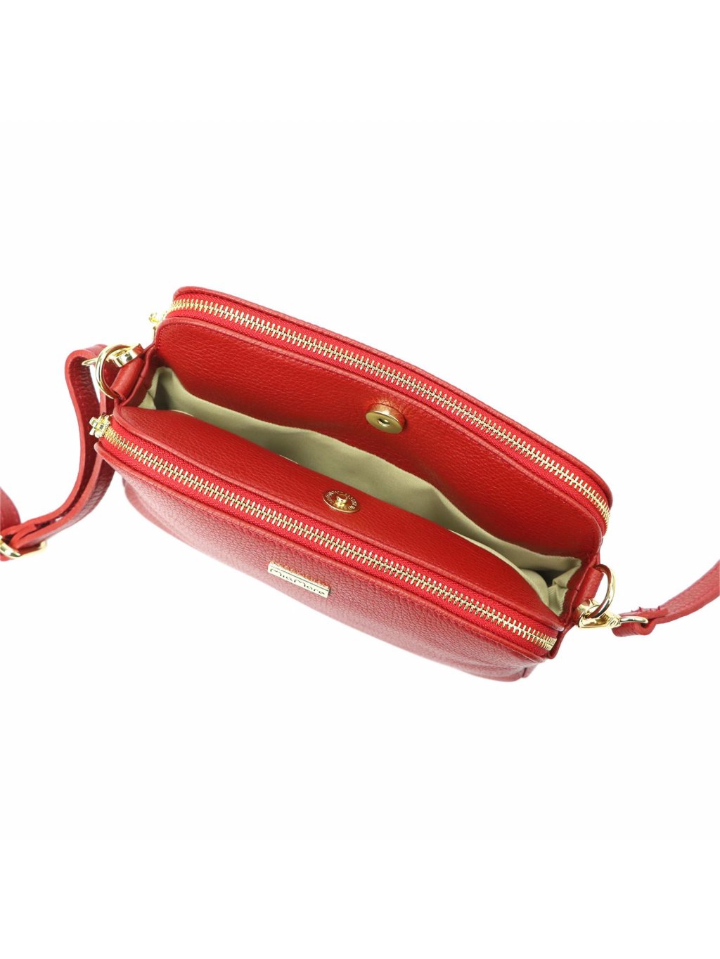Elegantní crossbody kabelka módní značky MiaMore, ušitá z pravé přírodní kůže. Kabelka má nejen moderní střih, ale je navíc i velmi praktická a nabídne Vám hned tři hlavní kapsy. Uvnitř těchto kapes najdete ještě jednu kapsičku na zip a kapsičku na drobnosti. Součástí kabelky je nastavitelný popruh přes rameno. Komponenty na kabelce mají zlatou barvu.