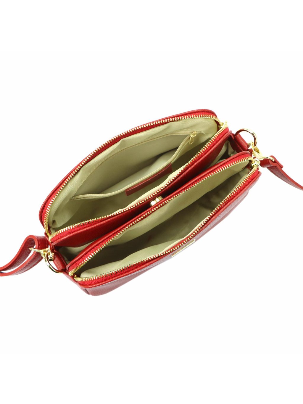 Elegantní crossbody kabelka módní značky MiaMore, ušitá z pravé přírodní kůže. Kabelka má nejen moderní střih, ale je navíc i velmi praktická a nabídne Vám hned tři hlavní kapsy. Uvnitř těchto kapes najdete ještě jednu kapsičku na zip a kapsičku na drobnosti. Součástí kabelky je nastavitelný popruh přes rameno. Komponenty na kabelce mají zlatou barvu.