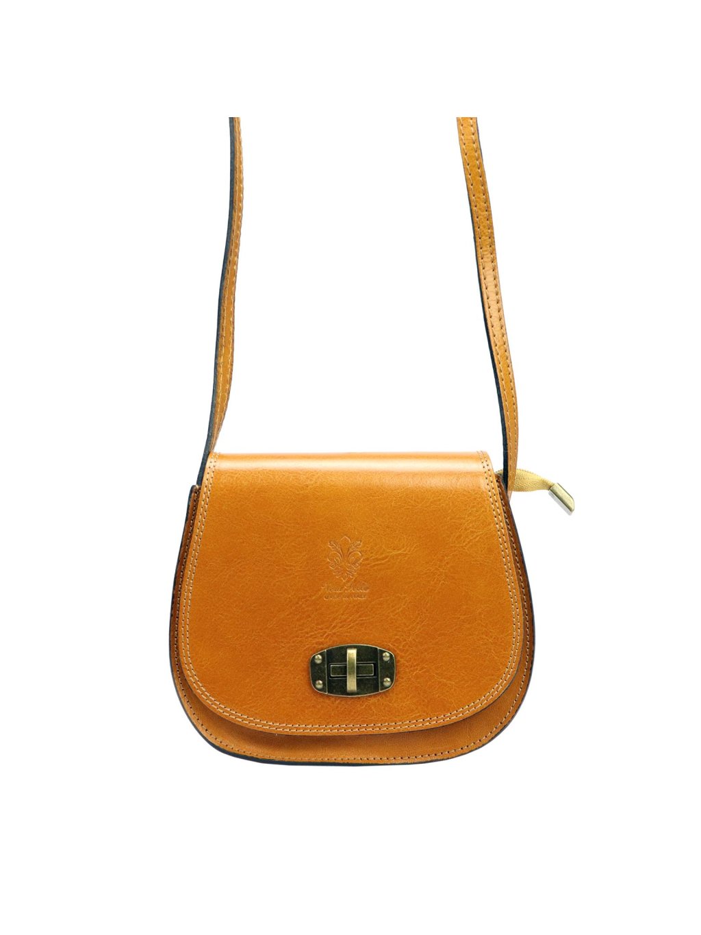 Klasická kožená crossbody kabelka je stále módní a vyhovuje všem požadavkům dnešních žen. Jedná se opět o italský kožený výrobek značky Gregorio. Kabelka má zaoblený tvar a zavírá se velkou klopou na přední části, a to pomocí kabelového „zámečku“. Klopa i celá kabelka je prošitá pevnou nití. Vnitřek je pošitý látkovou podšívkou a je tam jedna přihrádka. Tato kabelka se nosí klasicky přes rameno, nebo do kříže, a to díky dlouhému řemínku.
