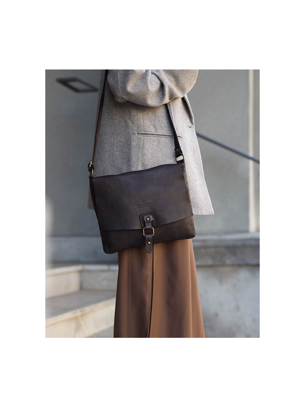Pohodlná, sportovní crossbody kabelka z kvalitní přírodní kůže v oblíbeném vintage stylu. Taška je ručně šitá a barvená podle nejnovějších trendů v nejlepších italských koželužnách, díky čemuž je každý kus výjimečný a originální. Proměnlivá struktura kůže a nestejné barvy jsou součástí designu výrobku a dokládají jeho autenticitu. Díky klasickému střihu nepřestane být tako crossbody kabelka nikdy módní. Přístup do vnitřku tašky je zajištěn masivním mosazným zipem a klopou. Uvnitř jsou 3 kapsy, z toho jedna na zip. Další praktická kapsa se nachází na zadní straně modelu. Pohodlné nošení na rameni zajišťuje nastavitelný popruh.