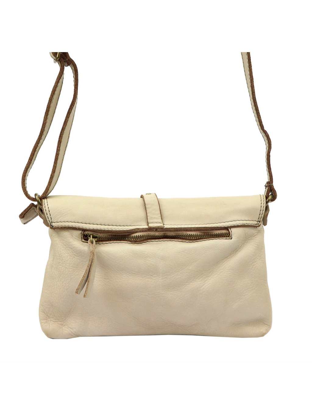 Klasická kabelka typu crossbody. Taška je ručně šitá a barvená podle nejnovějších trendů v nejlepších italských koželužnách, díky čemuž je každý kus výjimečný a jedinečný. Proměnlivá struktura usně je součástí designu výrobku a svědčí o jeho originalitě. Taška vintage vzhledu se vyznačuje tím, že je velmi jemná a příjemná na dotek. Přístup do vnitřní části tašky je zajištěn dvojitou klopou s magnetickou sponou a zipem. Vnitřek je podšitý. Uvnitř dvě kapsy: otevřená a uzavíratelná na zip. Další praktická kapsa je na zadní straně.
