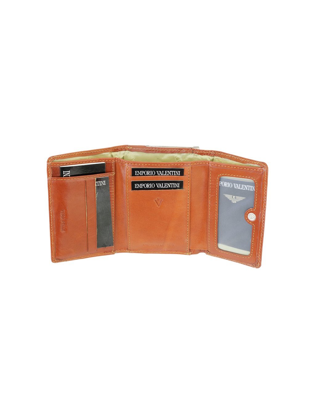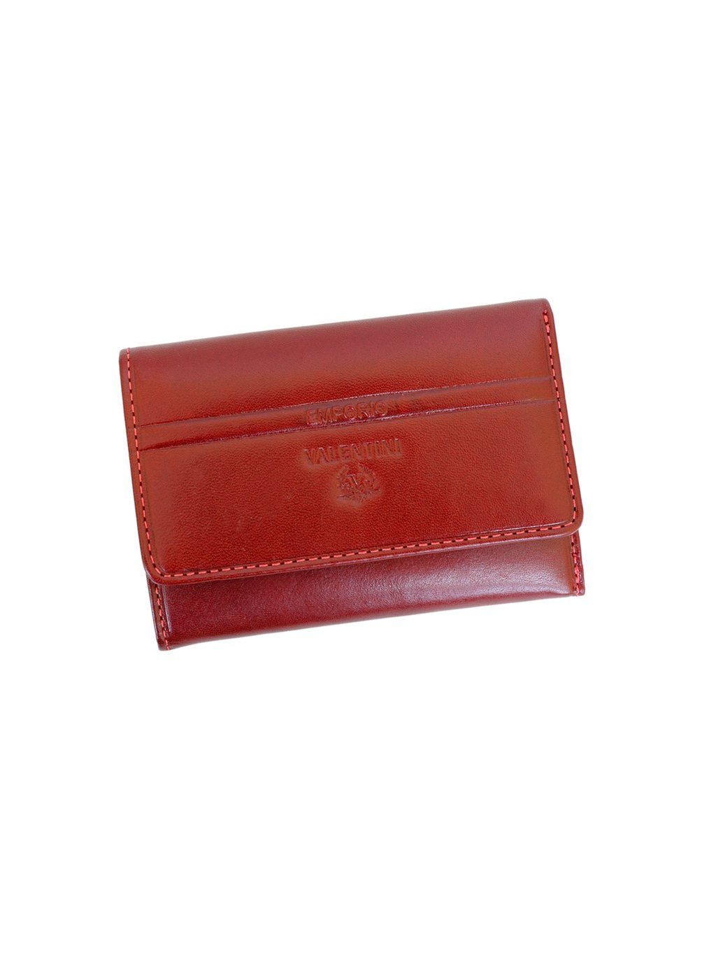 Tato menší dámská kožená peněženka značky Emporio Valentini je ušitá z přírodní měkké kůže. Celá peněženka se uzavírá na druk, po jejím rozevření nabízí dostatek přihrádek pro veškeré doklady, věrnostní karty i platební karty. Na vrchní straně peněženky je podšitá přihrádka, která je určená pro papírové bankovky. Na zadní straně této peněženky je mincovník v kovovém rámu, který se uzavírá klipem. Peněženka je dodávaná v papírové krabičce. Peněženka je červená i uvnitř.