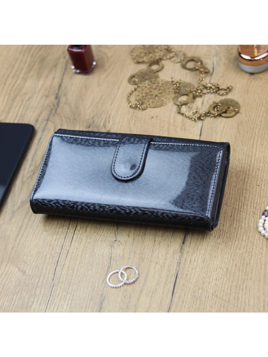 Dámská kožená peněženka, která je ušitá z přírodní kůže. Celá peněženka se uzavírá klopnou na druk, po jejím rozevření nabízí dostatek prostoru pro veškeré doklady, platební karty i věrnostní karty. Na vrchní straně peněženky se nachází foch, který je určený pro papírové bankovky. Na zadní straně je mincovník v kovovém rámu, který se uzavírá klipem. Vedle mincovníku je praktická klopna na druk pro další karty a doklady.