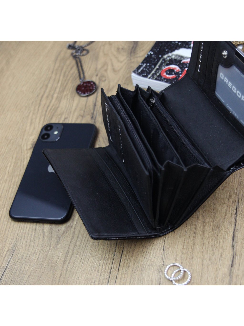 Hledáte-li praktickou peněženku s dostatkem prostoru na karty, doklady a další nezbytnosti, pak je tento model značky Gregorio určen právě vám.