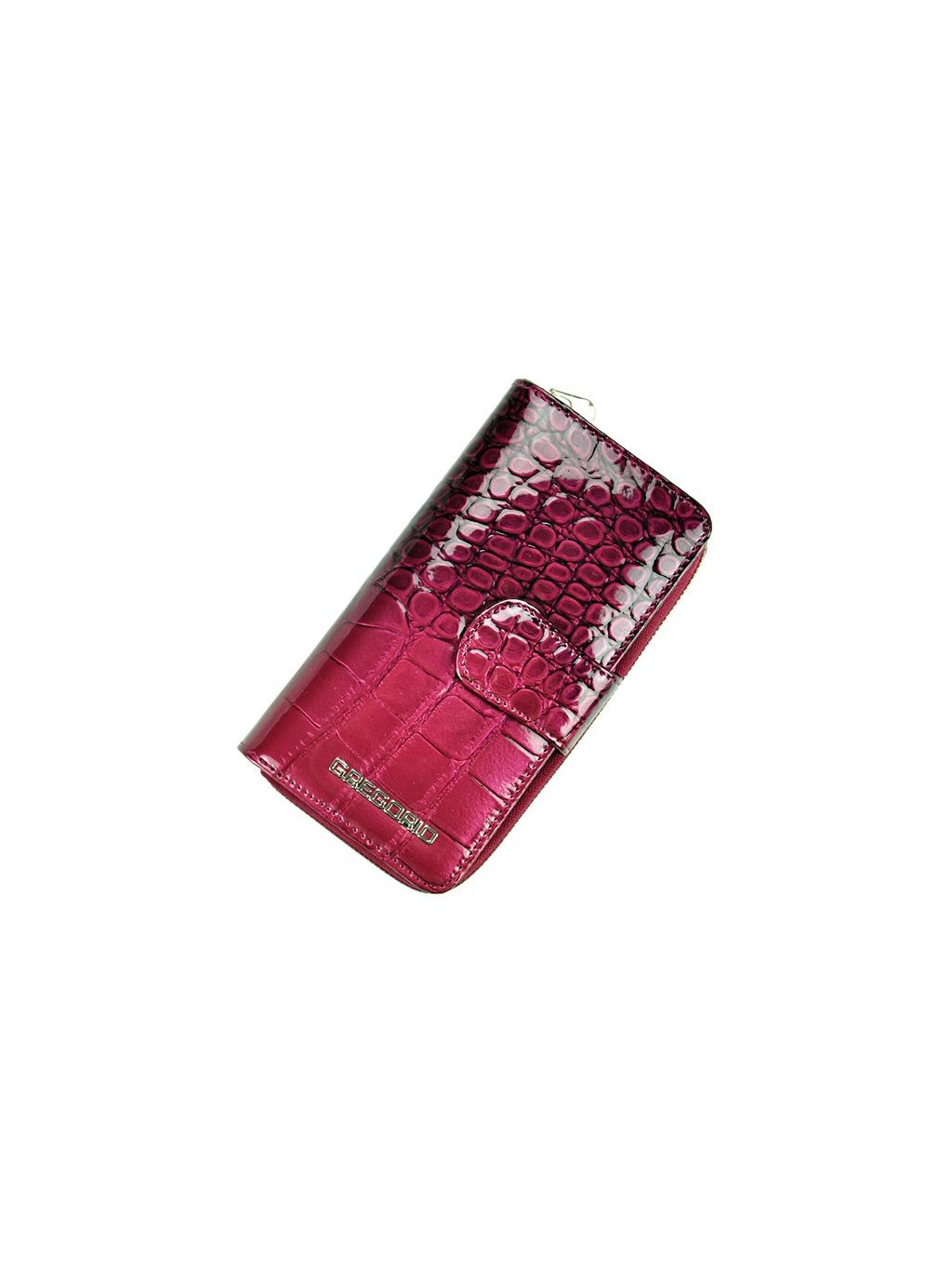 Dámská kožená peněženka, která je vyrobena z pravé přírodní lakované kůže, ve které je vyražený moderní „kroko“ vzor. Celá peněženka je rozdělena na dvě části, mincovník, který se uzavírá zipem a zipovou separací je rozdělený na dvě části. Zip peněženky jde doširoka rozepnout a ulehčuje tak manipulaci s drobnými mincemi. Druhá část je na karty a se zapíná úzkou pinetkou na patentku. Kromě množství přihrádek na klasické karty, obsahuje i prostor pro doklady. Fochy pro papírové bankovky jsou na svrchní straně peněženky.