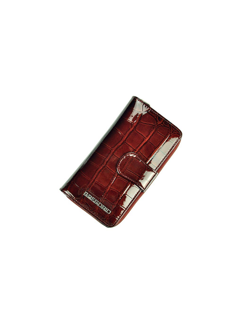 Dámská kožená peněženka, která je vyrobena z pravé přírodní lakované kůže, ve které je vyražený moderní „kroko“ vzor. Celá peněženka je rozdělena na dvě části, mincovník, který se uzavírá zipem a zipovou separací je rozdělený na dvě části. Zip peněženky jde doširoka rozepnout a ulehčuje tak manipulaci s drobnými mincemi. Druhá část je na karty a se zapíná úzkou pinetkou na patentku. Kromě množství přihrádek na klasické karty, obsahuje i prostor pro doklady. Fochy pro papírové bankovky jsou na svrchní straně peněženky.