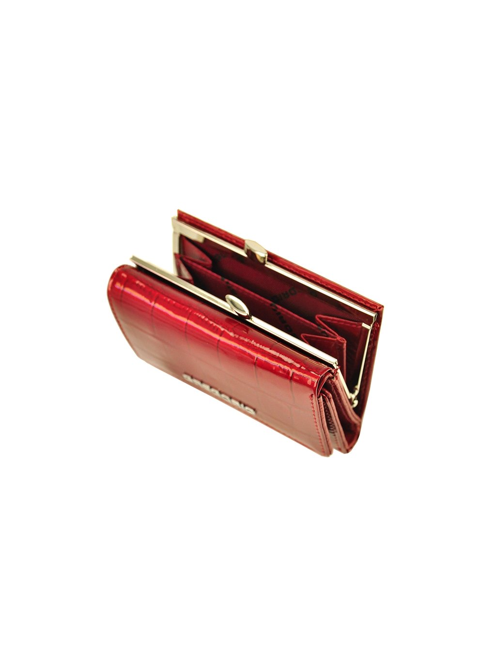 Dámská kožená peněženka, která je vyrobena z pravé přírodní lakované kůže ve které je vyražený moderní „kroko“ vzor. Peněženka má na jedné straně rámečkovou komoru na mince, která je rozdělena na dvě části. Na druhé straně je prostor uzavíratelný drukem, kde se nachází přihrádky na kreditní karty a doklady. Dva fochy na papírové bankovky jsou z vrchní strany peněženky. Na přední straně je umístěno stříbrné logo francouzského výrobce. Peněženka je dodávána v luxusní
