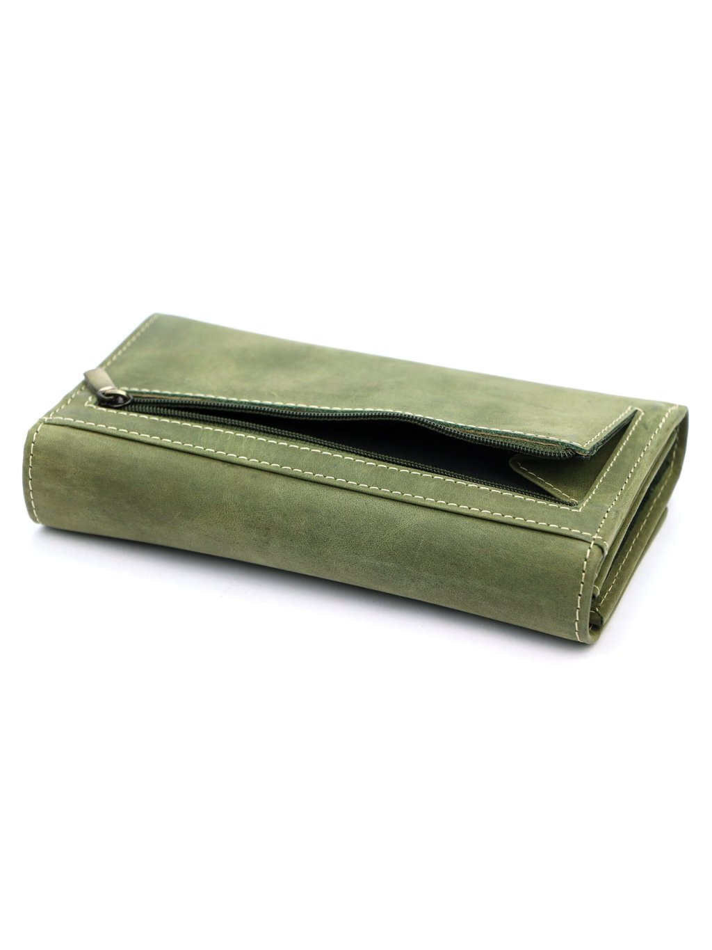 Dámská peněženka ušitá z pravé přírodní hovězí kůže. Zapínání peněženky je řešeno klopou na druk. Vnitřní prostor nabízí několik praktických přihrádek na doklady, věrnostní karty, kreditní karty a oddíly na papírové bankovky. Mincovník na drobné mince je uzavíratelný zipem. Elegantní a zároveň praktický doplněk pro každodenní použití, který udělá radost i jako vkusný dárek.