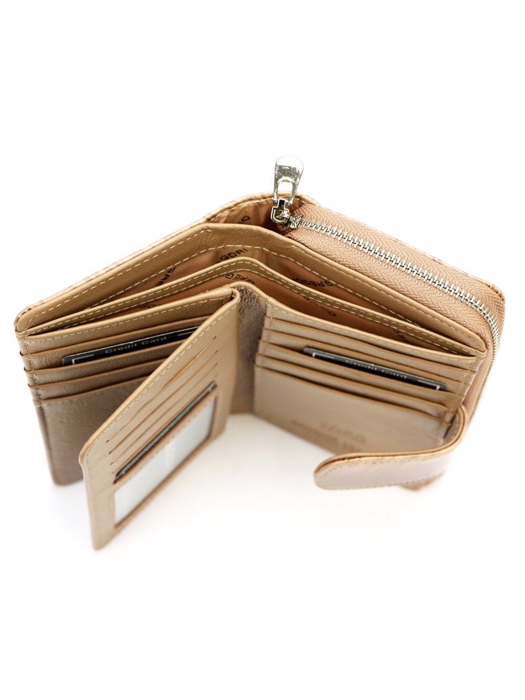 Tato kompaktní dámská kožená peněženka je ušitá z přírodní kůže. Celá peněženka je rozdělena na dvě části. První část obsahuje mincovník, který se uzavírá na zip. Druhá část peněženky obsahuje přihrádky, které jsou určeny na věrnostní či kreditní karty a doklady. Přihrádky na papírové bankovky jsou ve vrchní části peněženky. Peněženka se uzavírá klopnou na druk a je dodávána v papírové krabičce.
