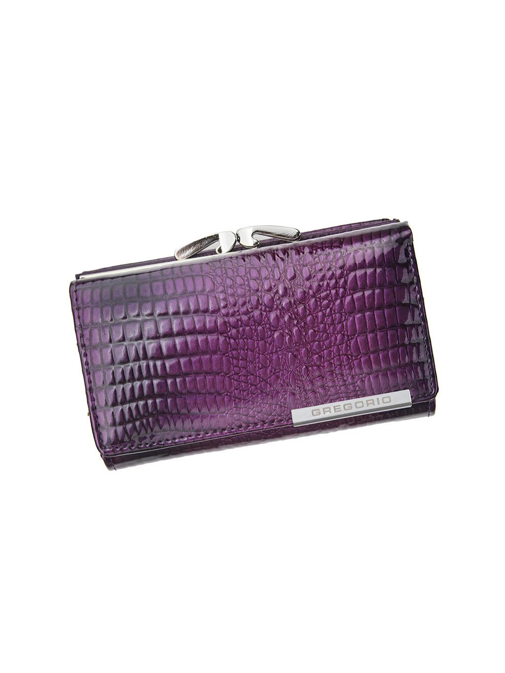 Dámská kožená peněženka, která je ušitá z lakované přírodní kůže, ve které je vyražený moderní krokodýlí vzor. Celá peněženka se uzavírá klopnou na druk, po jejím rozevření nabízí dostatek prostoru pro veškeré doklady, platební karty i věrnostní karty. Na vrchní straně peněženky se nachází foch, který je určený pro papírové bankovky. Na zadní straně je mincovník v kovovém rámu, který se uzavírá klipem. Vedle mincovníku je praktická klopna na druk pro další karty a doklady.