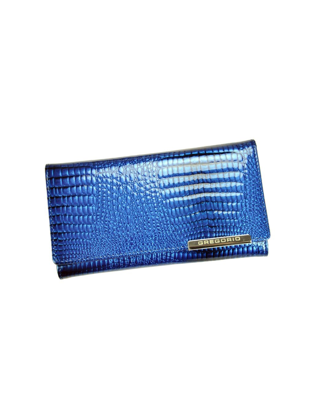 Tato kožená peněženka je vyrobena z pravé přírodní lakované kůže s vyraženým moderním „croko" vzorem. Peněženka se se zavírá na klopnou na patentku, uvnitř nalezneme tři samostatné fochy na papírové bankovky předělené zipovou separací a jsou tedy vhodné na drobné mince. Přihrádky na doklady a kreditní karty nalezneme z vnitřní strany klopnu. Peněženka je dodávána v papírové krabičce.
