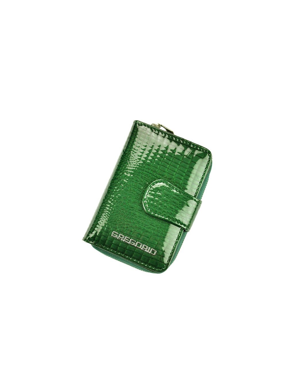 Menší dámská kožená peněženka, která je vyrobena z pravé přírodní lakované kůže, ve které je vyražený moderní „kroko“ vzor. Celá peněženka je rozdělena na dvě části, mincovník, který se uzavírá zipem a zipovou separací je rozdělený na dvě části. Zip peněženky jde doširoka rozepnout a ulehčuje tak manipulaci s drobnými mincemi. Druhá část je na karty a se zapíná úzkou pinetkou na patentku. Kromě množství přihrádek na klasické karty, obsahuje i prostor pro doklady. Fochy pro papírové bankovky jsou na vrchní straně peněženky.