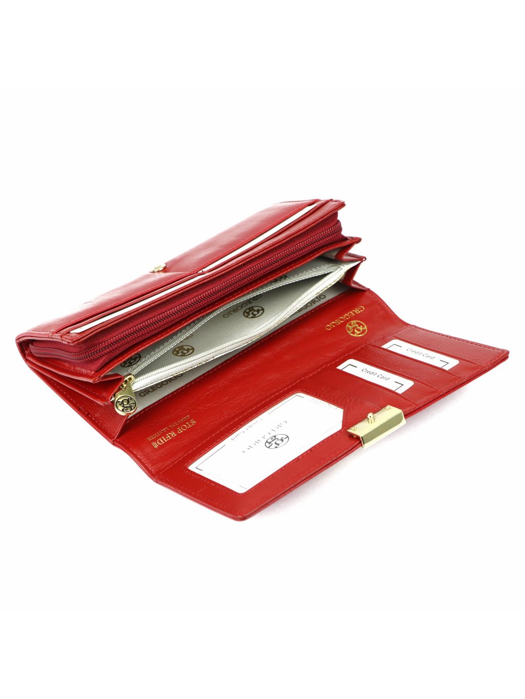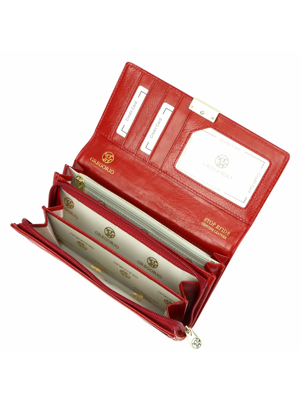 Tato dámská kožená peněženka Gregorio je ušitá z hladké přírodní hovězí kůže. Celkový vzhled peněženky působí velmi vkusně a elegantně. Peněženka se zavírá na druk. Vnitřní prostor obsahuje několik praktických přihrádek na doklady a kreditní karty. Fochy na papírové bankovky jsou vedle mincovníku, který se zavírá zipem. Peněženka je dodávána v papírové dárkové krabičce.