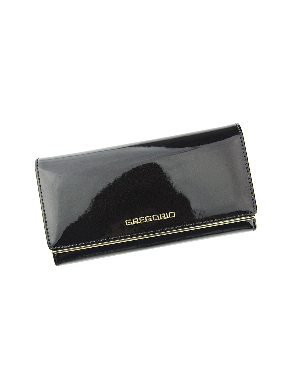 Tato dámská kožená peněženka Gregorio je ušitá z hladké přírodní lakované kůže. Celkový vzhled peněženky působí velmi vkusně a elegantně. Peněženka se zavírá na druk. Uvnitř nalezneme přihrádky na platební karty a doklady, mincovník s kovovým zapínáním a fochy na papírové bankovky. Logo na přední straně je zlaté barvy, peněženka je dodávána v papírové krabičce.