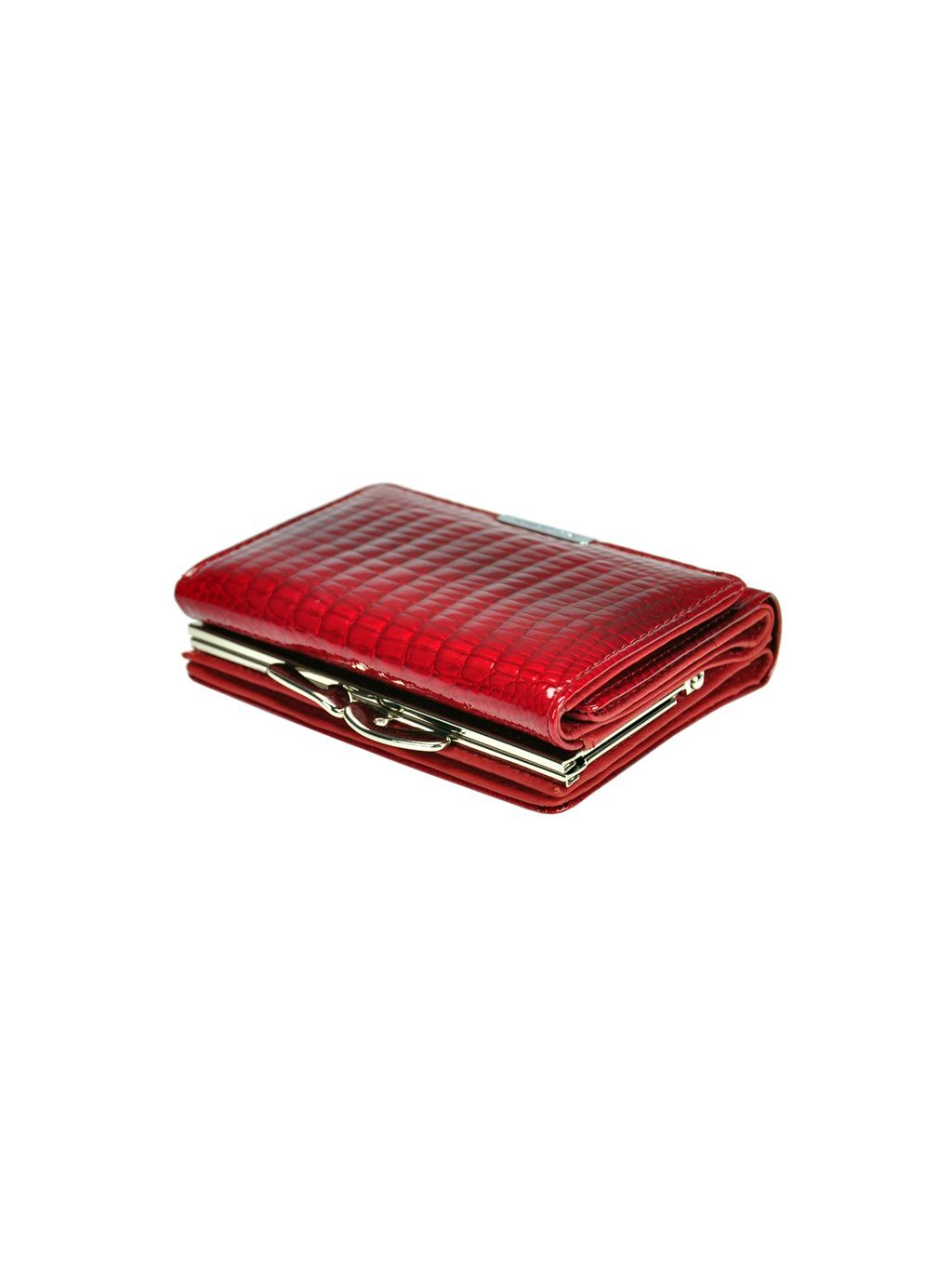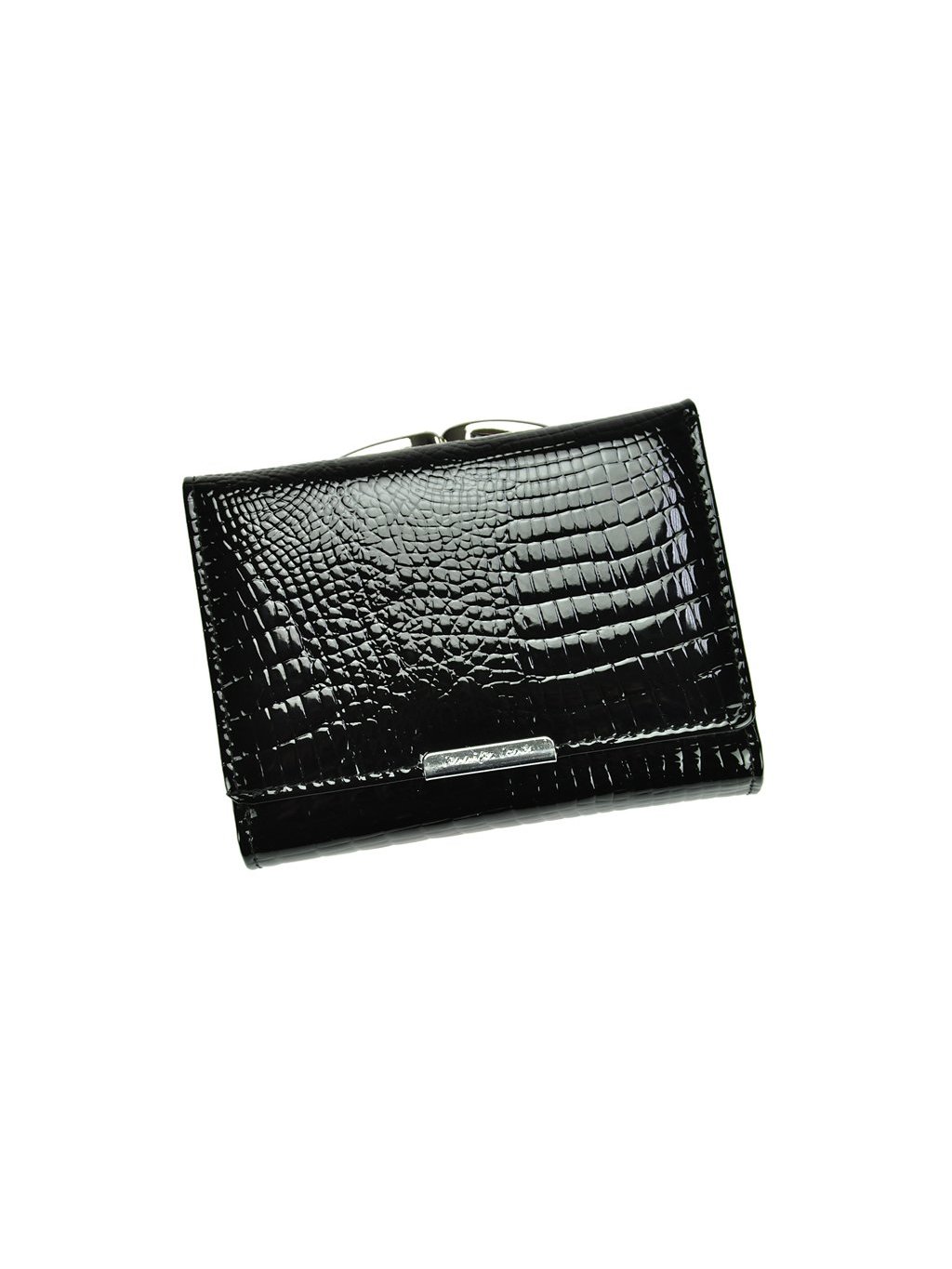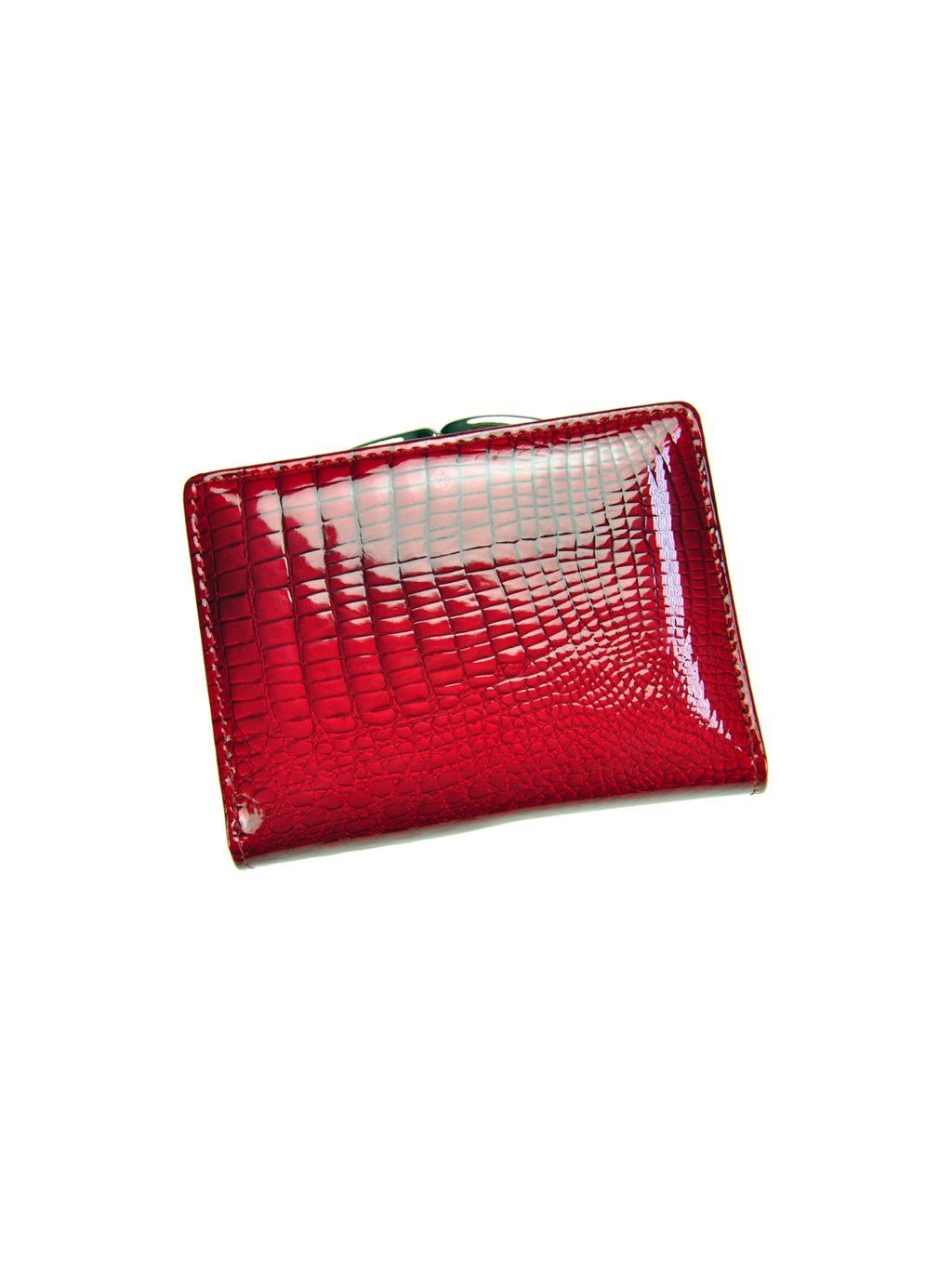 Menší dámská kožená peněženka Jennifer Jones ušitá z lakované přírodní kůže. Celkový vzhled peněženky působí velmi vkusně a elegantně. Peněženka má na jedné straně rámečkovou komoru na mince, která je rozdělena na dvě části. Na druhé straně je prostor uzavíratelný drukem, kde se nachází přihrádky na kreditní karty, věrnostní karty a doklady. Dva fochy na papírové bankovky jsou z vrchní strany peněženky. Na přední straně je umístěno zlaté logo.