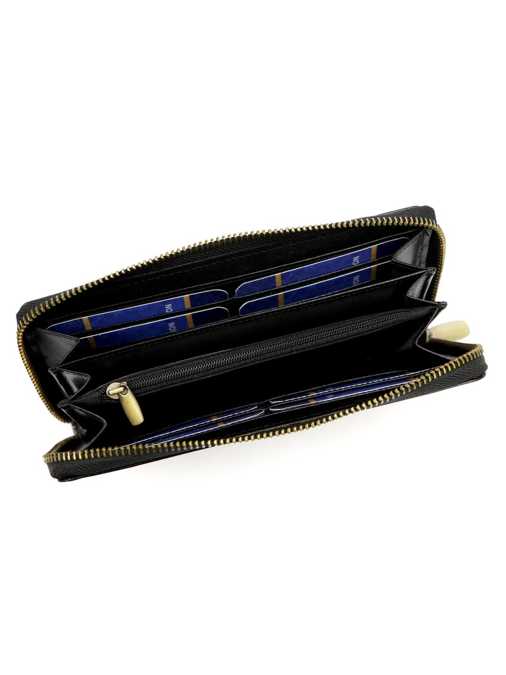 Tato dámská kožená peněženka penálového typu je ušitá přírodní měkké kůže. Celkový vzhled peněženky působí velmi luxusně a elegantně. Peněženka se uzavírá zipem, uvnitř obsahuje fochy na papírové bankovky, přihrádky na karty, doklady a zipově uzavíratelný mincovník na drobné. Na přední straně je zlaté logo výrobce.