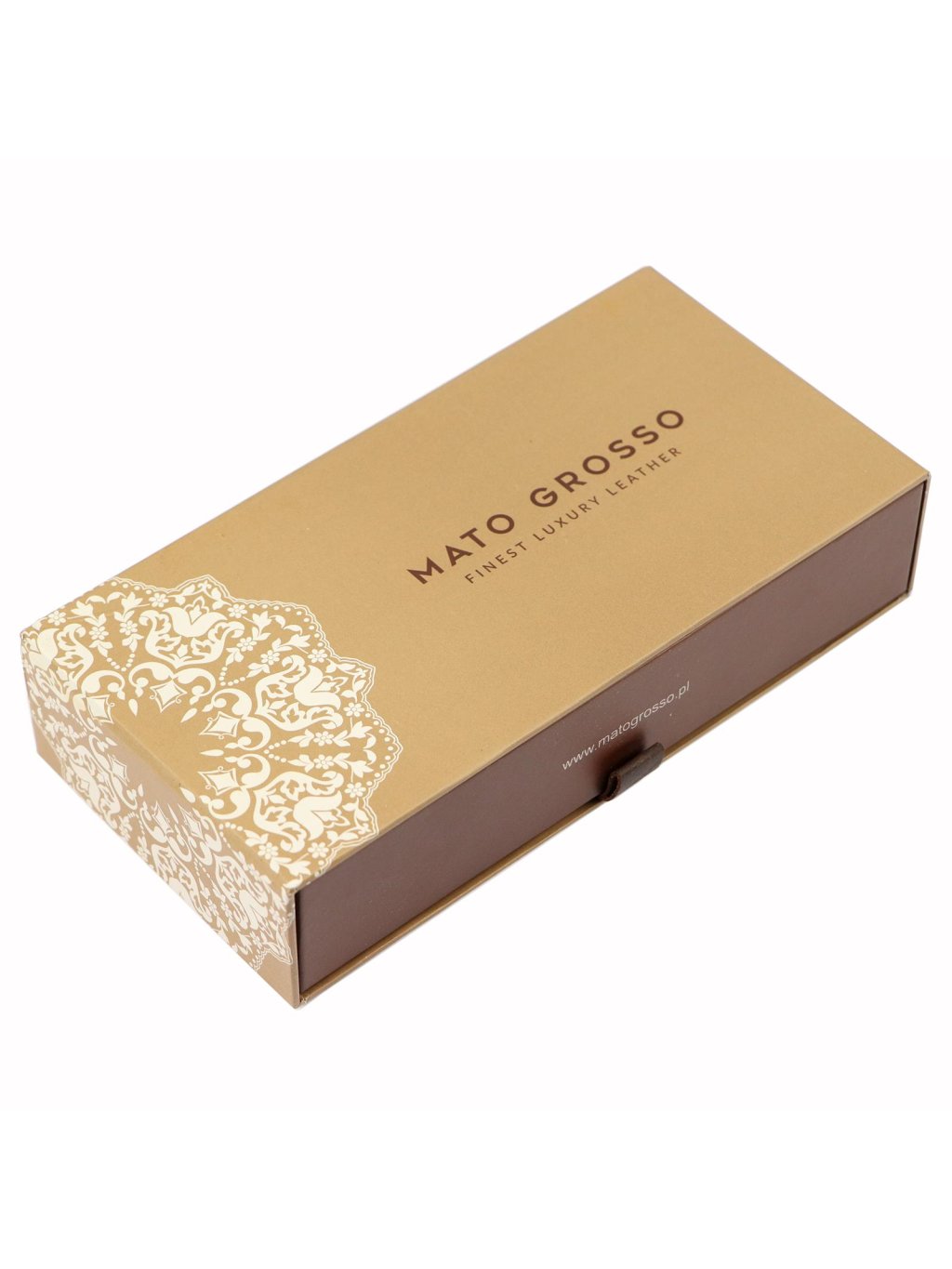 Velmi prostorná kožená peněženka značky Mato Grosso je přesně to, co potřebuje každá praktická žena. Peněženka se uzavírá patentkou. Uvnitř peněženky je dostatek přihrádek na platební karty, doklady i věrnostní katy, fochy na papírové bankovky a prostorná uzavíratelná kapsa na mince v rámu. Peněženka je zasílána v dárkové krabičce.
