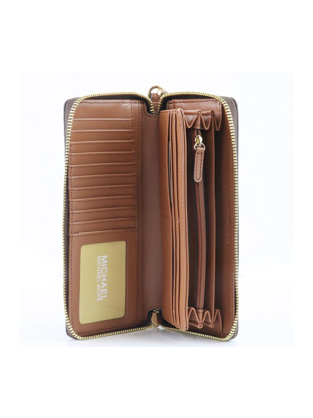 Tato luxusní dámská kožená peněženka penálového typu americké módní značky Michael Kors je ušitá z pravé přírodní kůže. Celkový vzhled peněženky působí velmi luxusně a elegantně. Peněženka se uzavírá zipem, uvnitř obsahuje fochy na papírové bankovky, přihrádky na karty, doklady a zipově uzavíratelný mincovník na drobné. Na přední straně je logo výrobce Michael Kors.