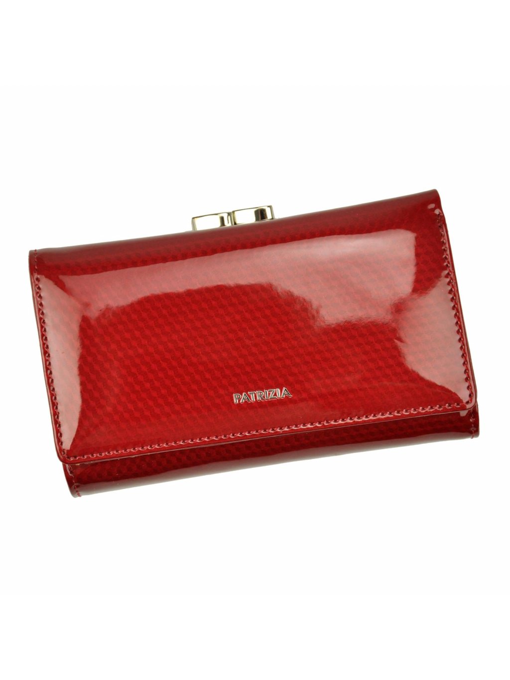Tato menší dámská kožená peněženka značky PATRIZIA je ušitá z přírodní lakované kůže. Celá peněženka se uzavírá na druk, po jejím rozevření nabízí dostatek přihrádek pro veškeré doklady, věrnostní karty i platební karty. Na vrchní straně peněženky je podšitá přihrádka, která je určená pro papírové bankovky. Na zadní straně této peněženky je mincovník v kovovém rámu, který se uzavírá klipem. Peněženka je dodávána v papírové krabičce.