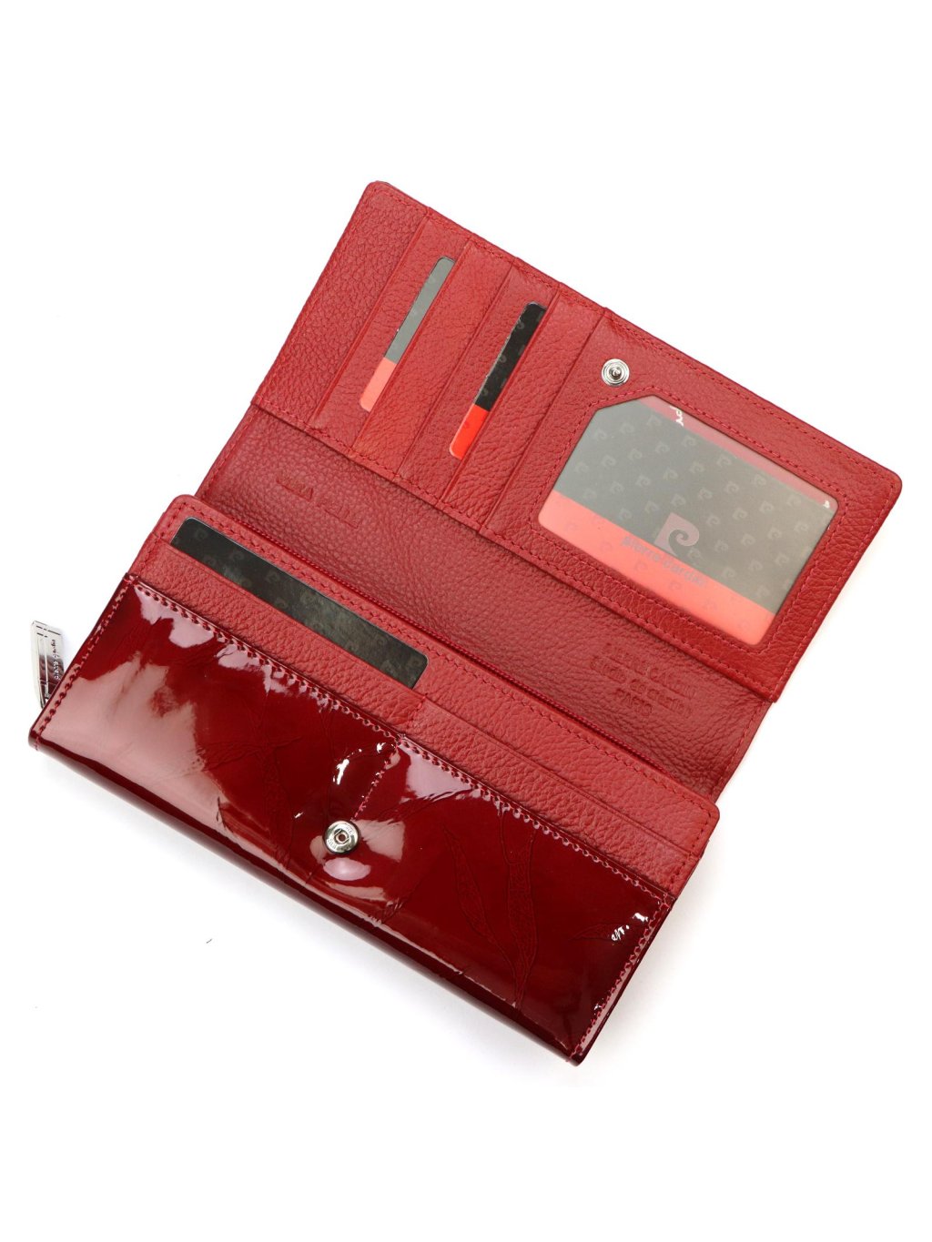 Luxusní dámská kožená peněženka francouzské značky Pierre Cardin je ušitá z lakované přírodní usně, která má decentní podkreslení. Čelní stranu peněženky zdobí stříbrné logo výrobce. Zapínaní peněženky je na druk. Vnitřní prostor obsahuje několik praktických přihrádek na doklady a kreditní karty. Fochy na papírové bankovky jsou vedle mincovníku, který se zavírá zipem. Peněženka je dodávána v papírové dárkové krabičce.