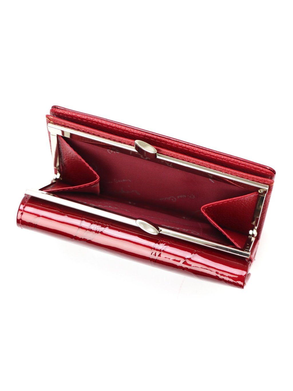 Středně velká dámská peněženka ušitá z přírodní lakované kůže. Peněženka se zapíná drukem a nabízí praktické členění: Fochy na papírové bankovky, Sloty platební karty věrnostní karty a doklady, průhledné okénka na fotografie a kapsu na drobné uzavíratelnou kovovým rámečkem na zadní straně. Celá peněženka se zapíná klopou na patent a je dodávána v originální dárkové krabičce, která ideální jako stylový a praktický dárek.