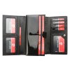 Tato luxusní dámská kožená peněženka francouzské značky Pierre Cardin je ušitá z lakované přírodní usně. Čelní stranu peněženky zdobí stříbrné logo výrobce. Peněženka se se zavírá na klopnou na patentku, uvnitř nalezneme tři samostatné fochy na papírové bankovky předělené separací. Jedna separace je zipově uzavíratelná a je tak vhodná na drobné mince. Velkou výhodou tohoto modelu druhá vnitřní klopna uzavíratelná zápinkou, pod kterou se nachází další praktické přihrádky na karty anebo doklady. Další zipově uzavíratelná kapsička se nachází i na zadní straně peněženky. Hledáte-li prostornou peněženku s dostatkem prostoru na karty, doklady a další nezbytnosti je tento model určen právě vám.
