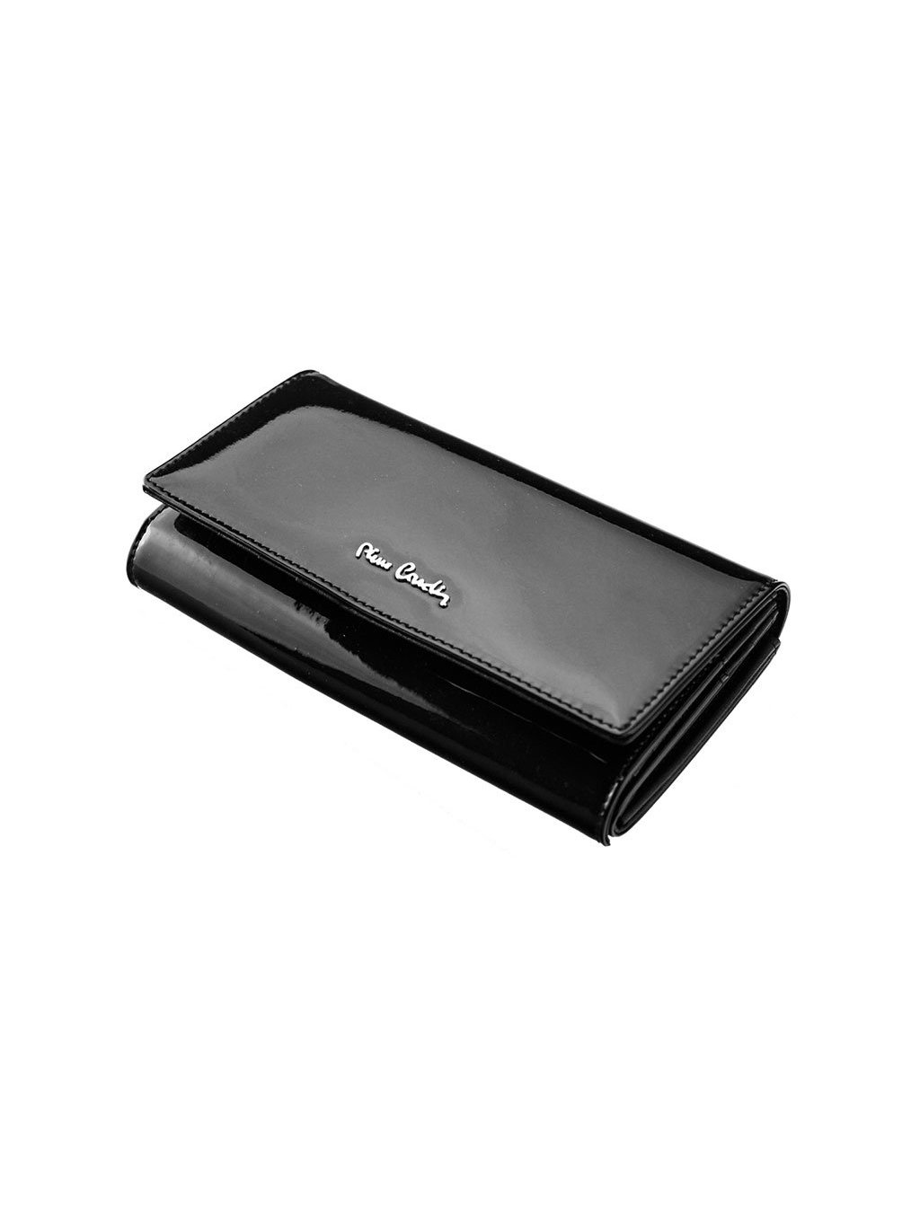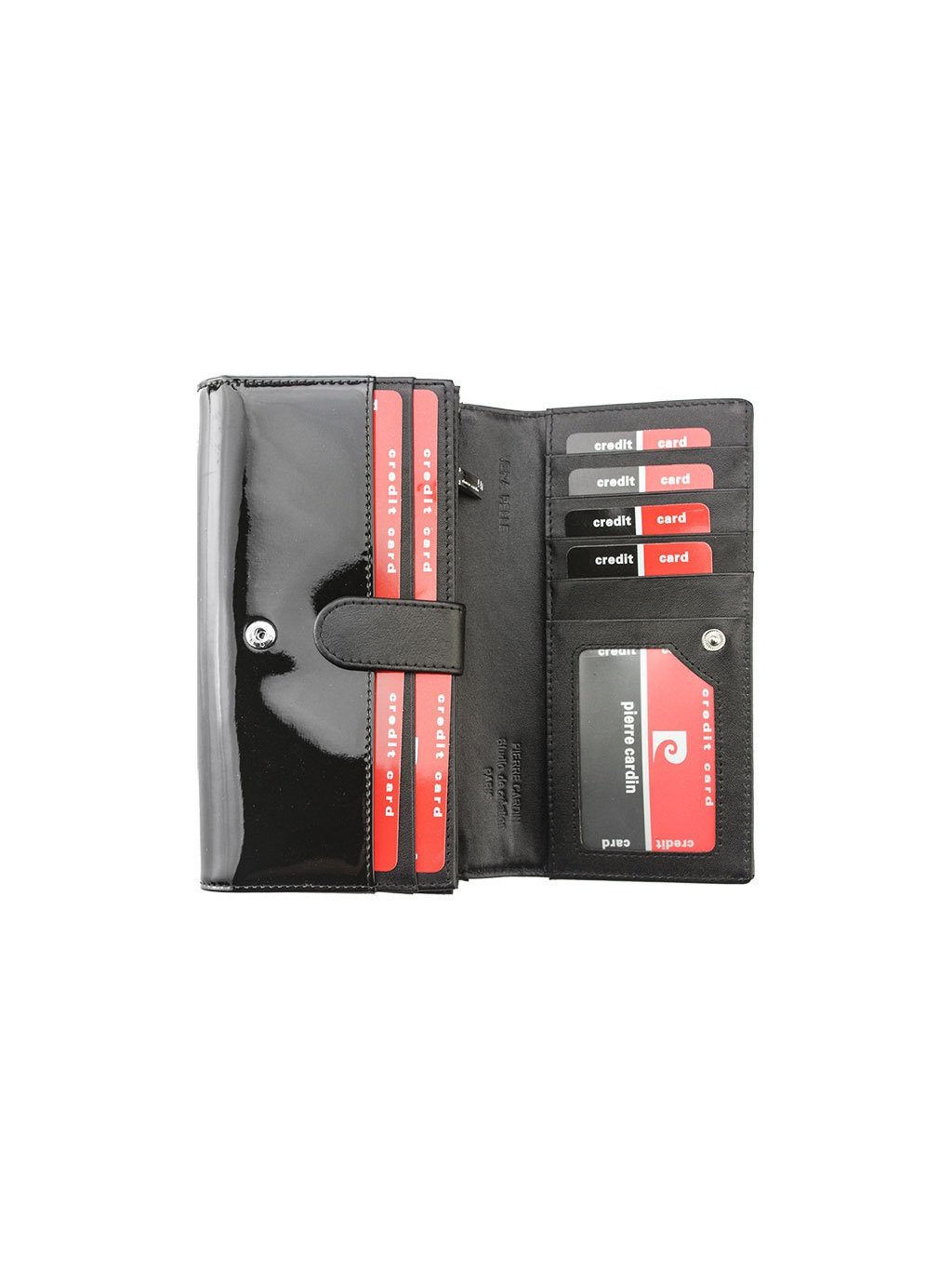 Tato luxusní dámská kožená peněženka francouzské značky Pierre Cardin je ušitá z lakované přírodní usně. Čelní stranu peněženky zdobí stříbrné logo výrobce. Peněženka se se zavírá na klopnou na patentku, uvnitř nalezneme tři samostatné fochy na papírové bankovky předělené separací. Jedna separace je zipově uzavíratelná a je tak vhodná na drobné mince. Velkou výhodou tohoto modelu druhá vnitřní klopna uzavíratelná zápinkou, pod kterou se nachází další praktické přihrádky na karty anebo doklady. Další zipově uzavíratelná kapsička se nachází i na zadní straně peněženky. Hledáte-li prostornou peněženku s dostatkem prostoru na karty, doklady a další nezbytnosti je tento model určen právě vám.