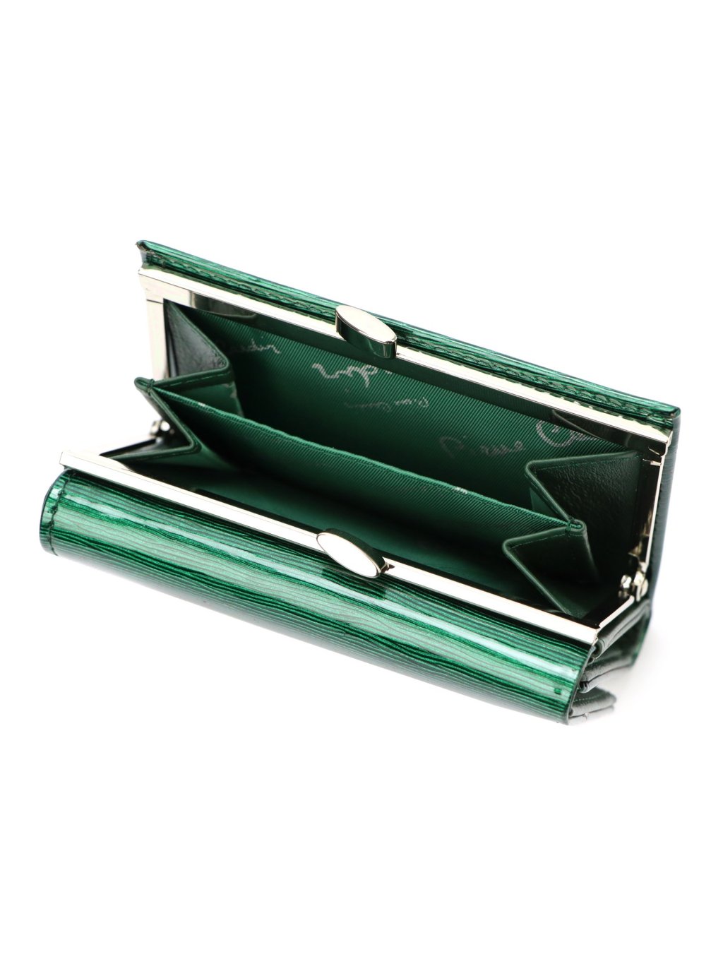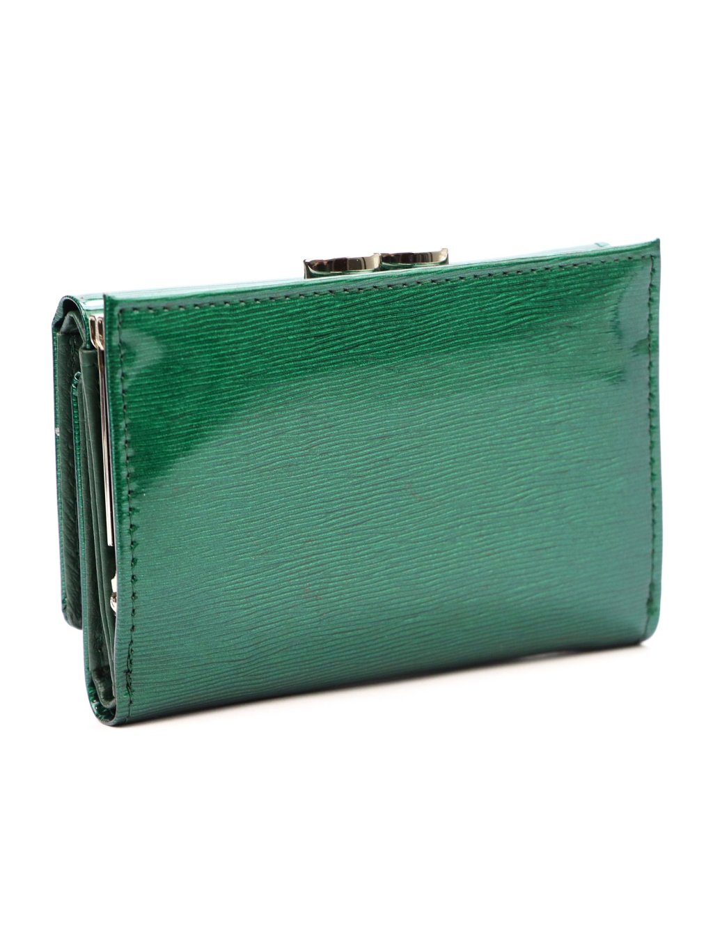 Středně velká dámská peněženka ušitá z přírodní lakované kůže. Peněženka se zapíná drukem a nabízí praktické členění: Fochy na papírové bankovky, Sloty platební karty věrnostní karty a doklady, průhledné okénka na fotografie a kapsu na drobné uzavíratelnou kovovým rámečkem na zadní straně. Celá peněženka se zapíná klopou na patent a je dodávána v originální dárkové krabičce, která ideální jako stylový a praktický dárek.