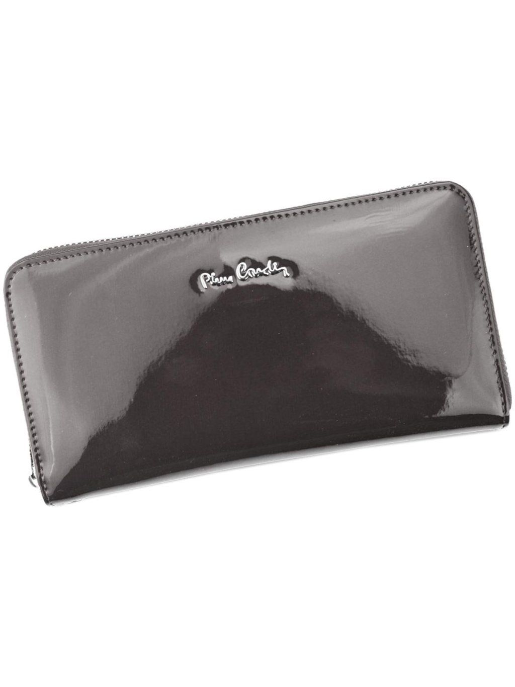 Tato luxusní dámská kožená peněženka penálového typu francouzské značky Pierre Cardin je ušitá z lakované přírodní kůže. Celkový vzhled peněženky působí velmi luxusně a elegantně. Peněženka se uzavírá zipem, uvnitř obsahuje fochy na papírové bankovky, přihrádky na karty, doklady a zipově uzavíratelný mincovník na drobné. Na přední straně je stříbrné logo výrobce. Peněženka je dodávána v luxusní krabičce.