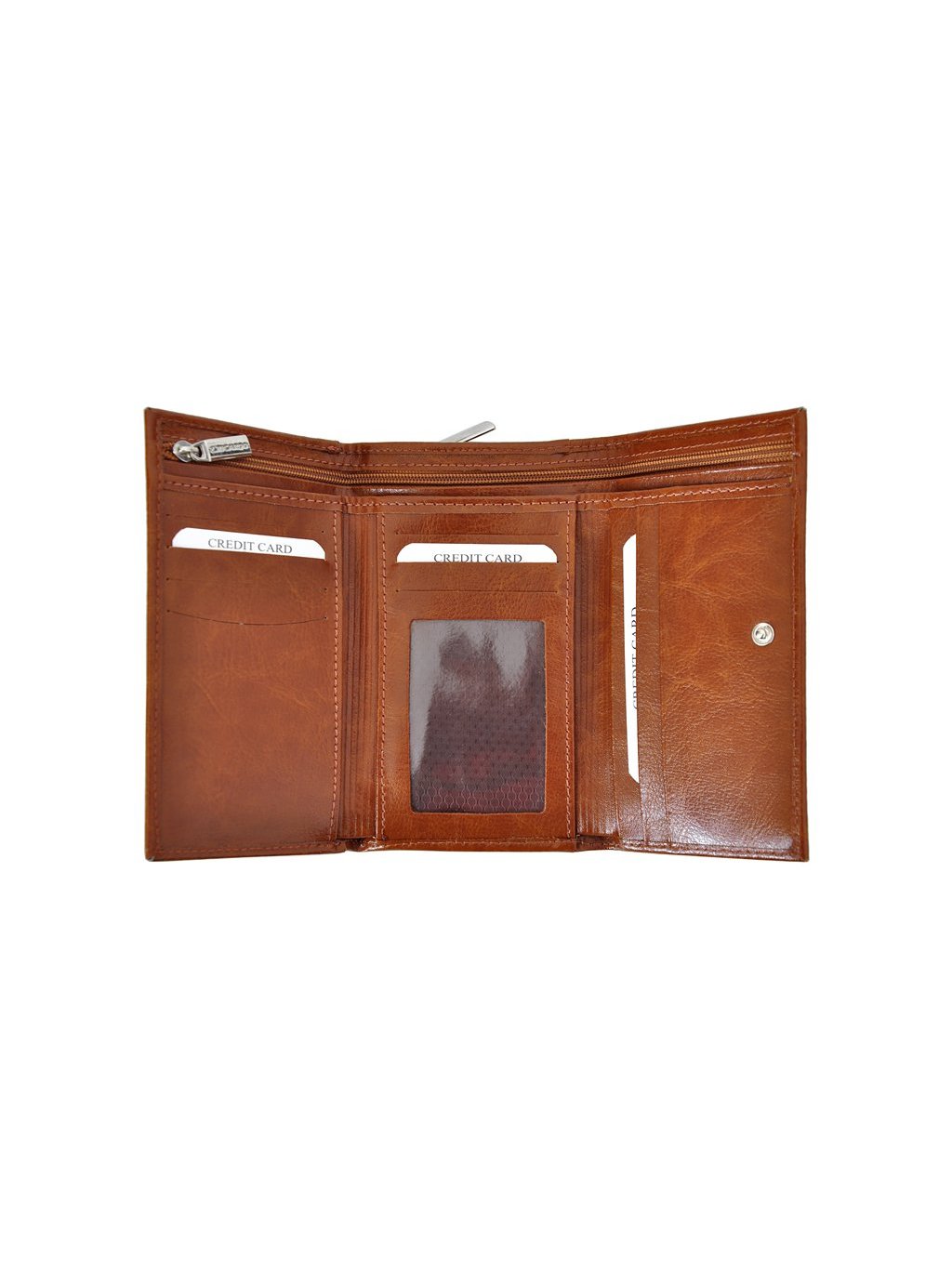 Dámská kožená peněženka Z.Ricardo ušitá z pravé přírodní kůže. Peněženka je uzavíratelná na klasický patentek. Uvnitř najdete místo na bankovky, přihrádky na platební či věrnostní karty a prostor na doklady. Fochy na papírové bankovky jsou umístěny na horní straně peněženky. Zipově uzavíratelný mincovník nalezneme na zadní straně. Logo výrobce nalezneme vyražené na přední straně.