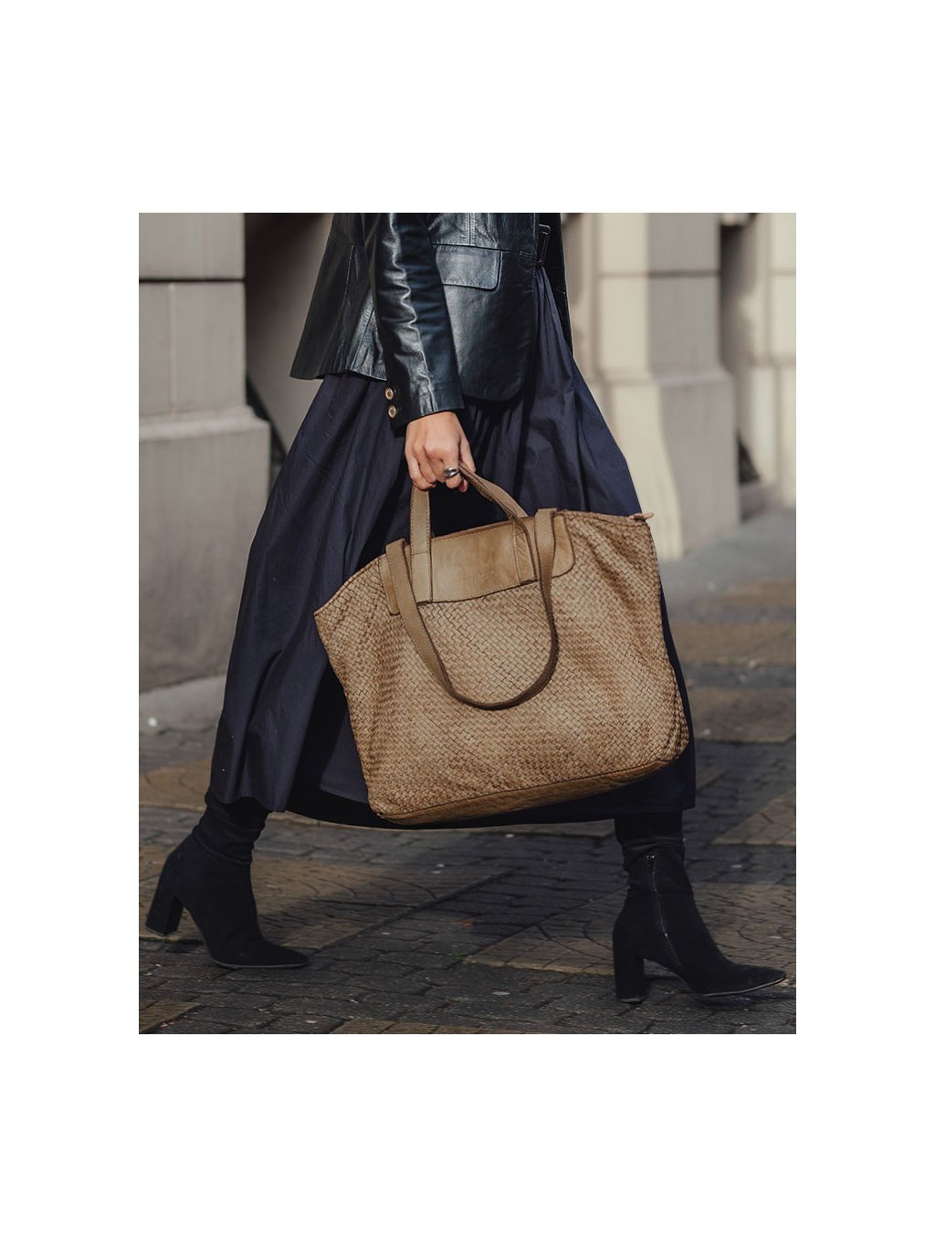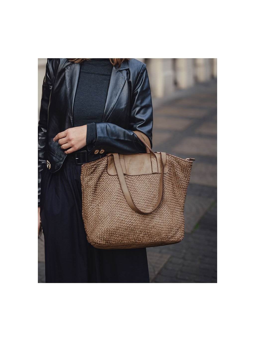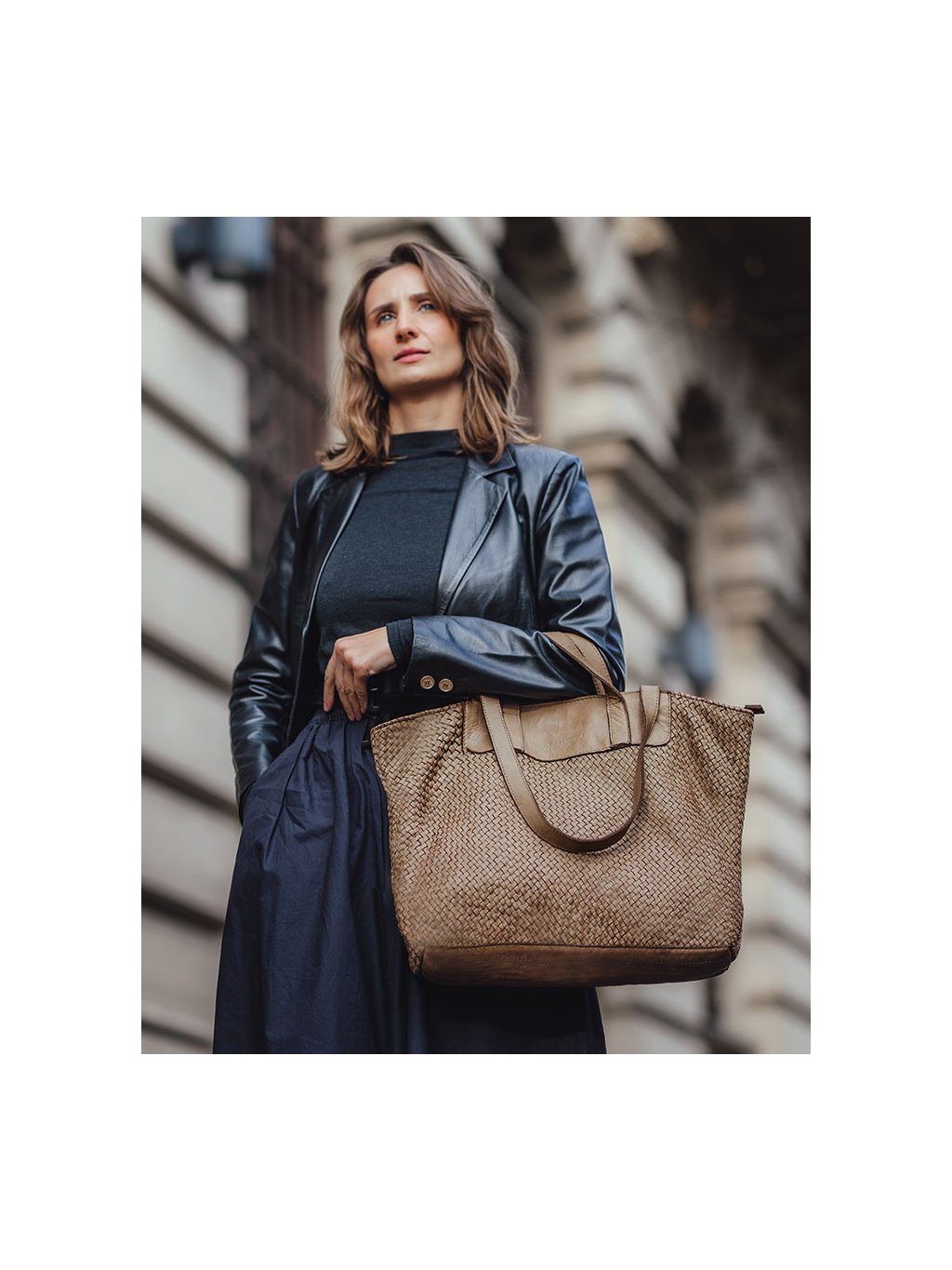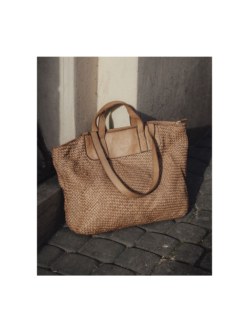 Pokud toužíte mít něco jedinečného a navíc ručně vyrobeného - tento model kabelky je pro vás jako stvořený! Velký městský shopper vám díky dvojitým uchům poskytne pohodlí při nošení v každé situaci. Ruční proletení kožených řemínků podtrhuje řemeslnou kvalitu přírodní kůže a kvalitní zpracování. Taška je určena k nošení v ruce nebo na rameni. Vnitřní prostor se uzavírá masivním kovovým zipem. Vnitřní prostor nabízí dvě větší přihrádky a kapsu na zip. Celá taška je podšitá látkovou podšívkou.