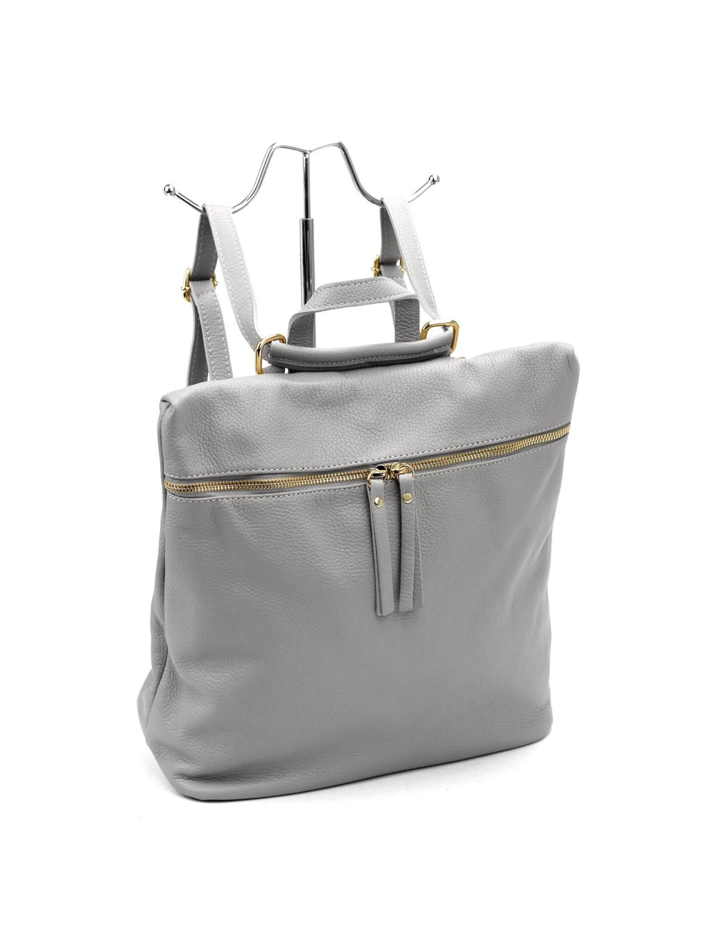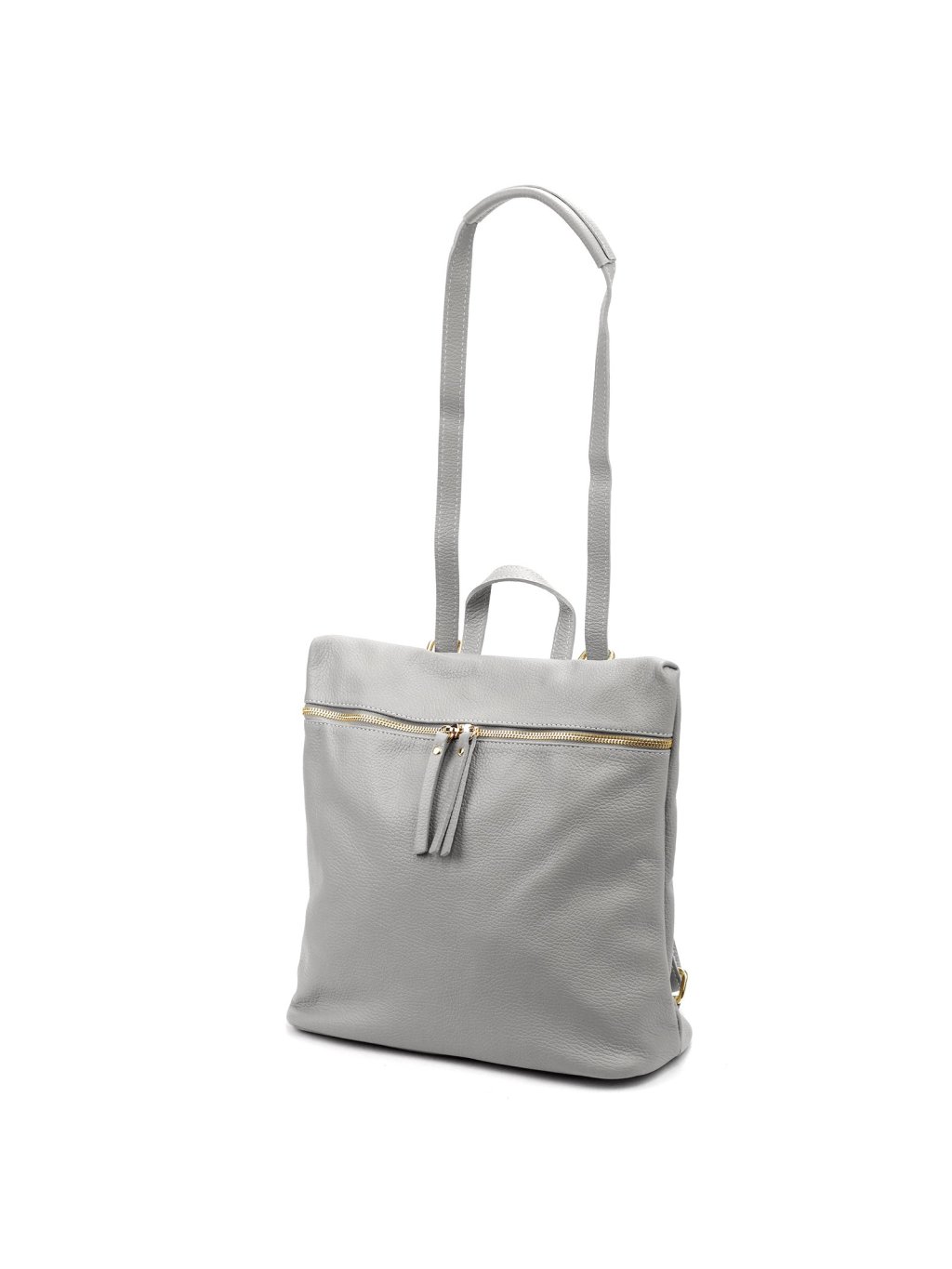Elegantní dámský kožený batoh, který spojuje styl a funkčnost a moderní design. Hlavní komora se uzavírá pevným kovovým zipem a uvnitř se nachází kapsa na zip. Vnější strana nabízí dvě praktické kapsy na zip pro rychlý přístup. Pohodlné nošení zajišťují ramenní popruhy s možností nastavení délky, takže batoh snadno přizpůsobíte jak nošení na zádech, tak jako kabelku přes rameno. Stříbrné kovové detaily elegantně doplňují celkový vzhled. Do tašky se vejde i formát A4, proto je ideální do práce, na schůzky i volný čas.