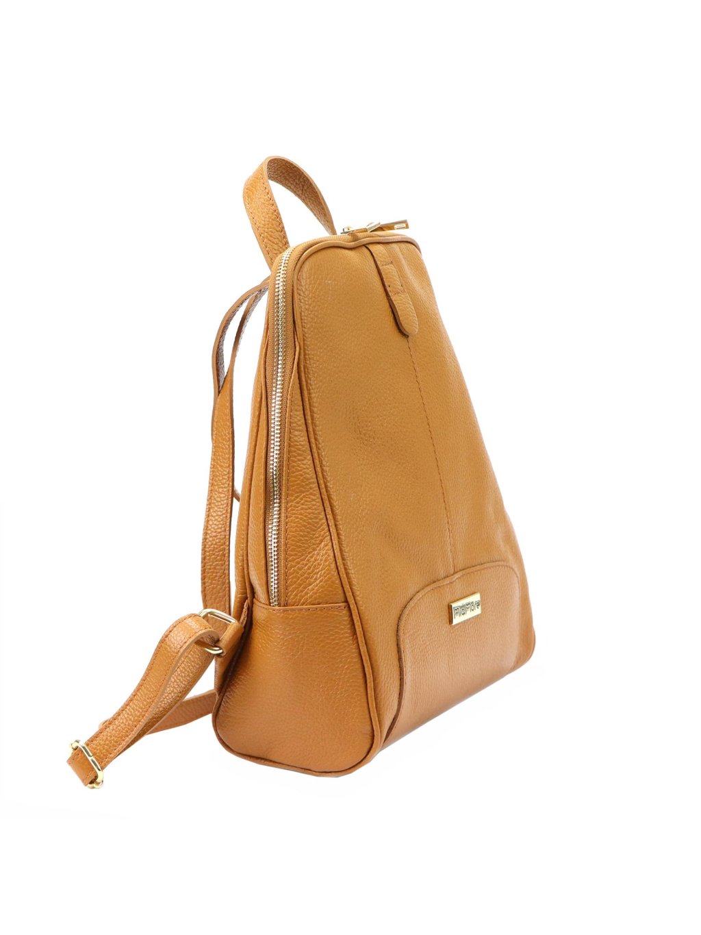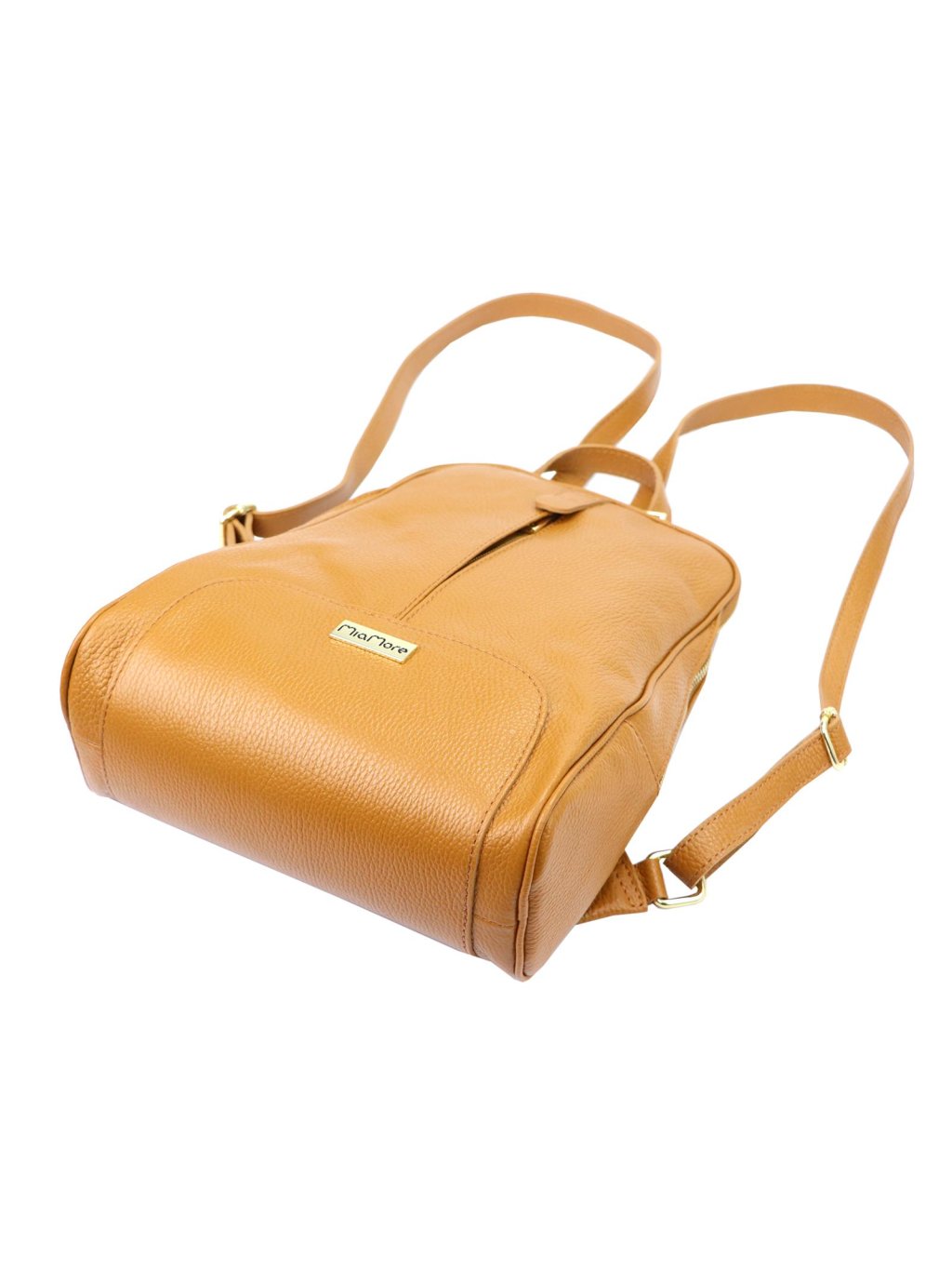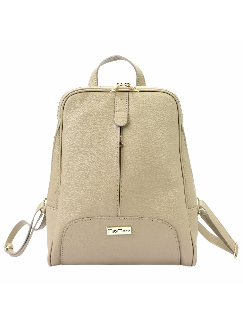 Italský kožený batoh značky MiaMore ušitý z přírodní usně. Jedná se o velmi prostorný jednokomorový model klasického tvaru se zipovým zapínáním. Uvnitř batohu je jedna kapsa na zip, jedna kapsa na telefon a jedna kapsa drobnosti. Výrazným prvkem tohoto batohu je vertikální kapsa na zip, praktická kapsa je i na zadní straně. Kovové prvky jsou zlaté. Maximální délka ramenního popruhu je 88 cm.