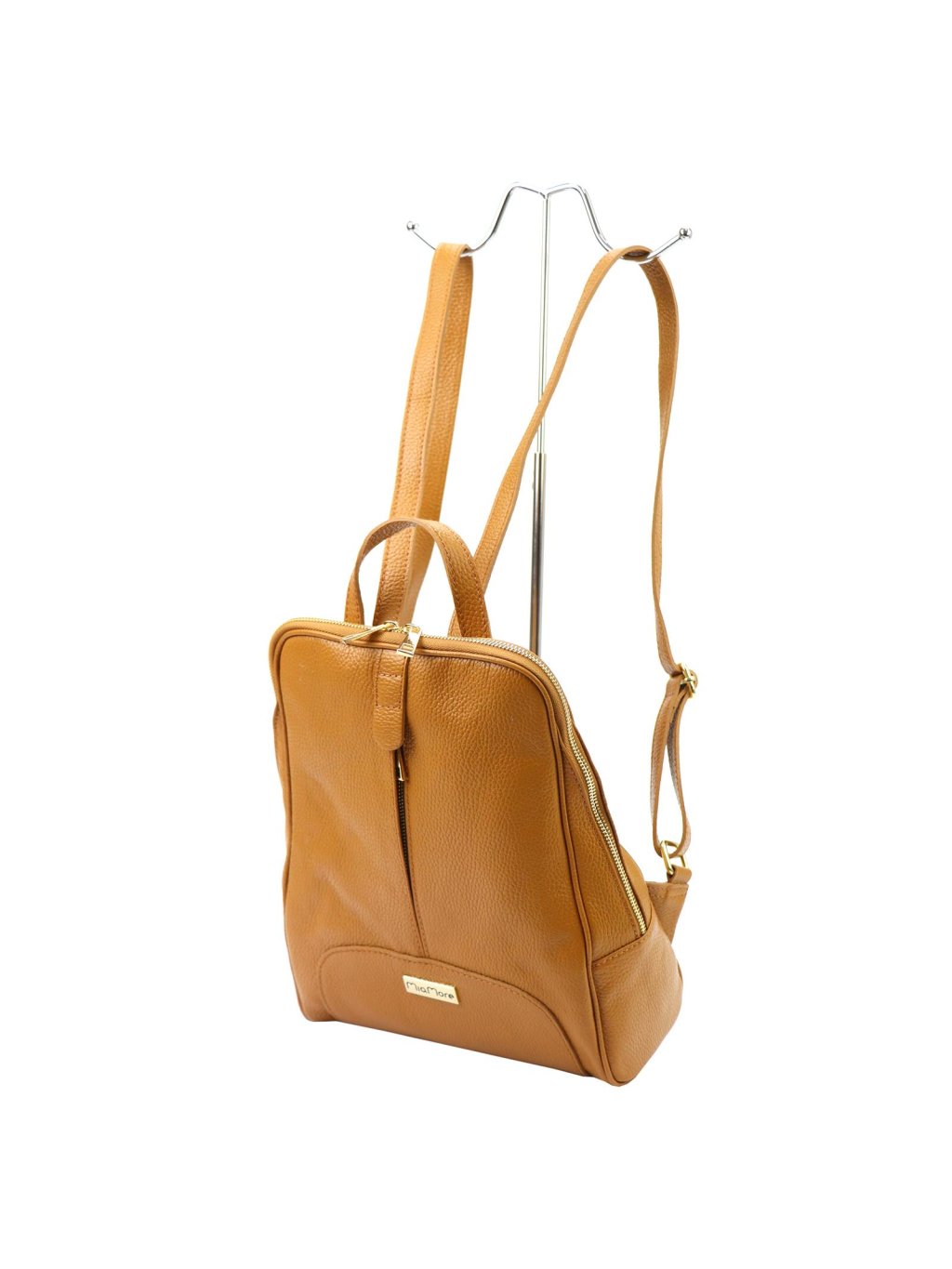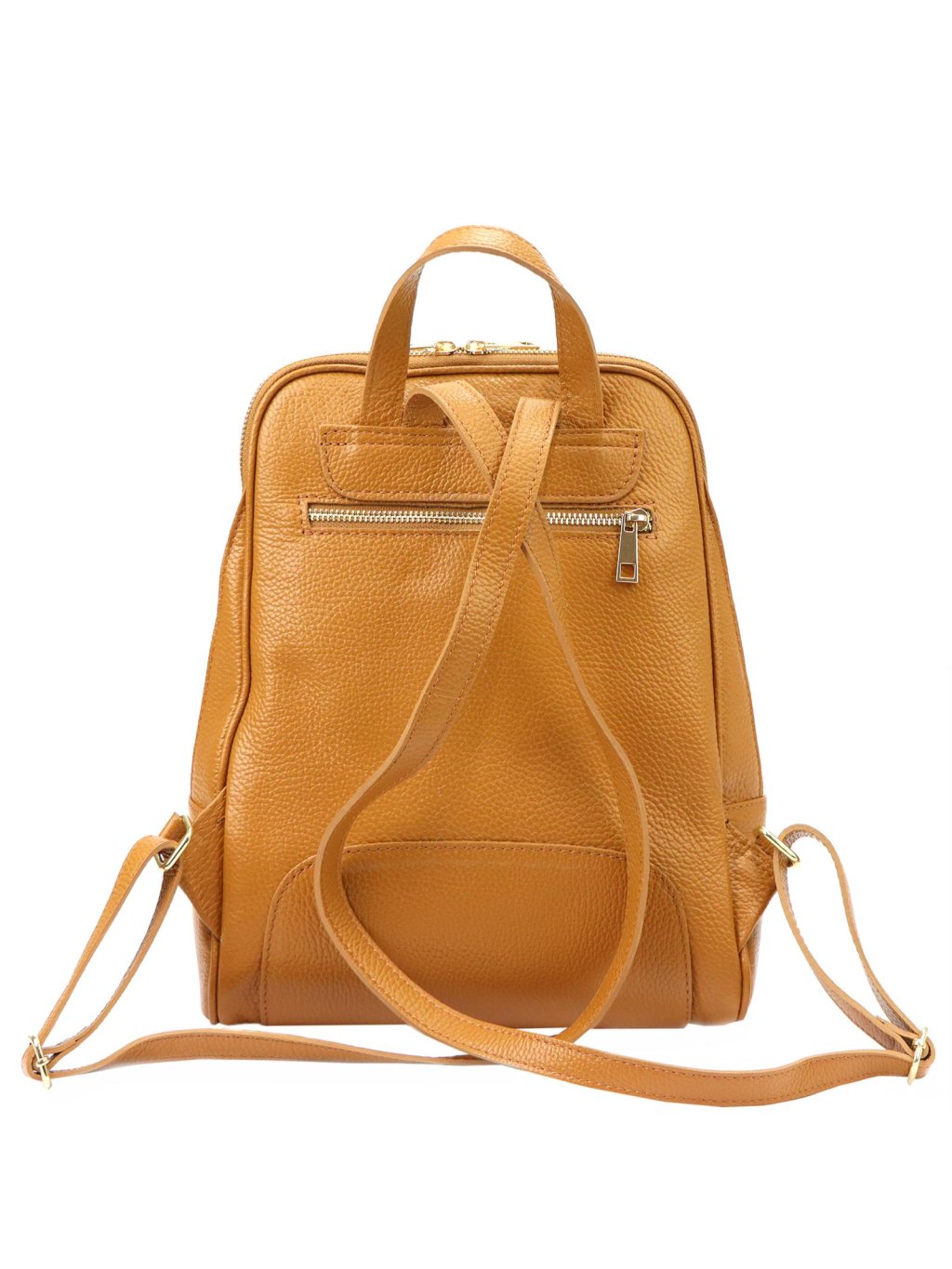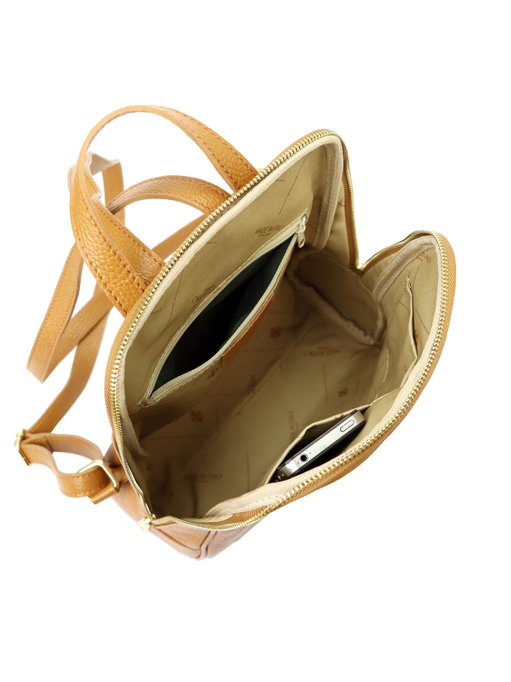 Italský kožený batoh značky MiaMore ušitý z přírodní usně. Jedná se o velmi prostorný jednokomorový model klasického tvaru se zipovým zapínáním. Uvnitř batohu je jedna kapsa na zip, jedna kapsa na telefon a jedna kapsa drobnosti. Výrazným prvkem tohoto batohu je vertikální kapsa na zip, praktická kapsa je i na zadní straně. Kovové prvky jsou zlaté. Maximální délka ramenního popruhu je 88 cm.