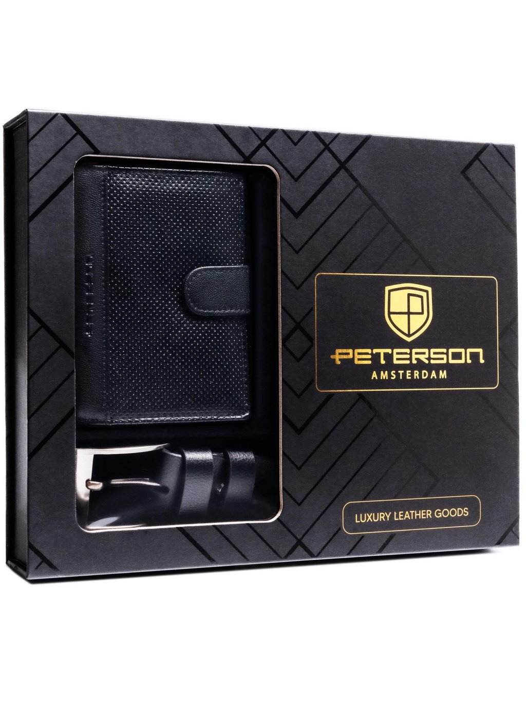 Elegantní dárková sada Peterson s koženou peněženkou a páskem v černém provedení, vhodná jako praktický a stylový dárek.