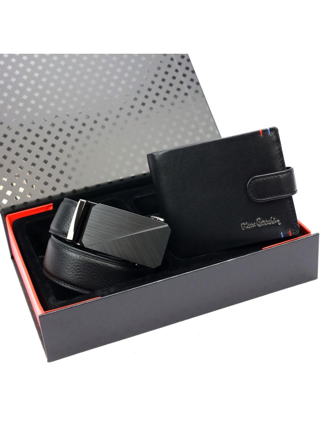 Dárkový set Pierre Cardin obsahuje pánskou koženou peněženku a kožený opasek stejné značky. Peněženka je vyrobena z kvalitní přírodní kůže, má praktický mincovník a dostatek přihrádek na kreditní karty. Kožený opasek Pierre Cardin je vyroben z přírodní kůže a doplněn kovovou sponou. Celý set je uložen v elegantní dárkové kazetě této značky. Opasek má délku 130 cm a jeho velikost lze snadno upravit.
