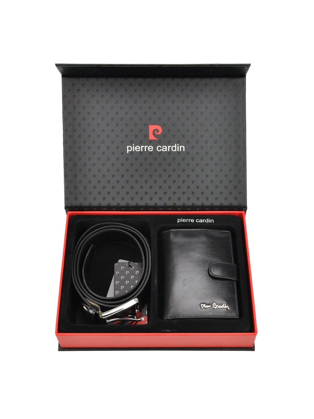 Dárkový set Pierre Cardin obsahuje pánskou koženou peněženku Pierre Cardin a kožený opasek stejné značky. Luxusní peněženka je ušita z kvalitní kůže černé barvy, obsahuje mincovník a dostatečné množství přihrádek na kreditní karty. Opasek Pierre Cardin je rovněž vyroben z přírodní kůže černé barvy a má klasickou stříbrnou sponu na které se nachází logo výrobce. Celý set je dodáván v dárkové kazetě černo - červené barvy s logem francouzské značky Pierre Cardin.