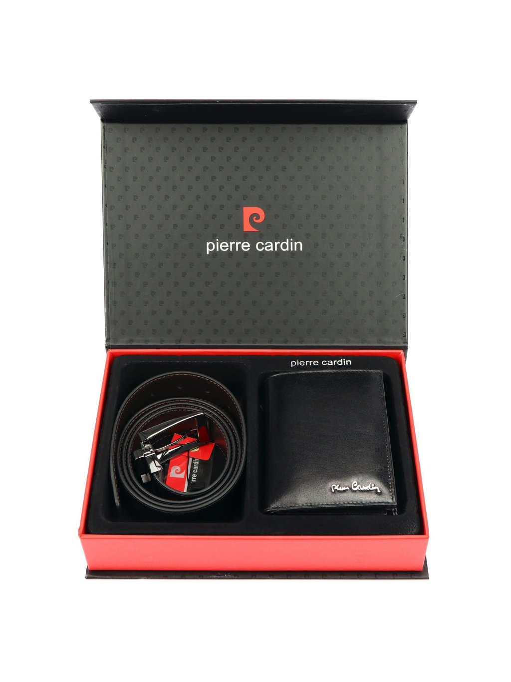 Dárkový set Pierre Cardin obsahuje pánskou koženou peněženku Pierre Cardin a kožený opasek stejné značky. Luxusní peněženka je ušita z kvalitní kůže černé barvy, obsahuje mincovník a dostatečné množství přihrádek na kreditní karty. Opasek Pierre Cardin je rovněž vyroben z přírodní kůže černé barvy a má klasickou stříbrnou sponu na které se nachází logo výrobce. Celý set je dodáván v dárkové kazetě černo - červené barvy s logem francouzské značky Pierre Cardin.