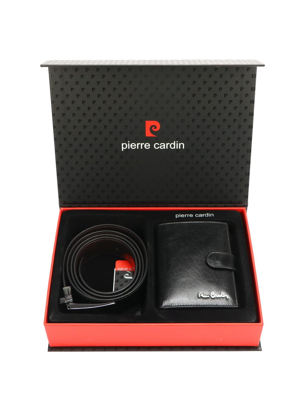 Dárkový set Pierre Cardin obsahuje pánskou koženou peněženku Pierre Cardin a kožený opasek stejné značky. Luxusní peněženka je ušita z kvalitní kůže černé barvy, obsahuje mincovník a dostatečné množství přihrádek na kreditní karty. Opasek Pierre Cardin je rovněž vyroben z přírodní kůže černé barvy a má klasickou stříbrnou sponu na které se nachází logo výrobce. Celý set je dodáván v dárkové kazetě černo - červené barvy s logem francouzské značky Pierre Cardin.