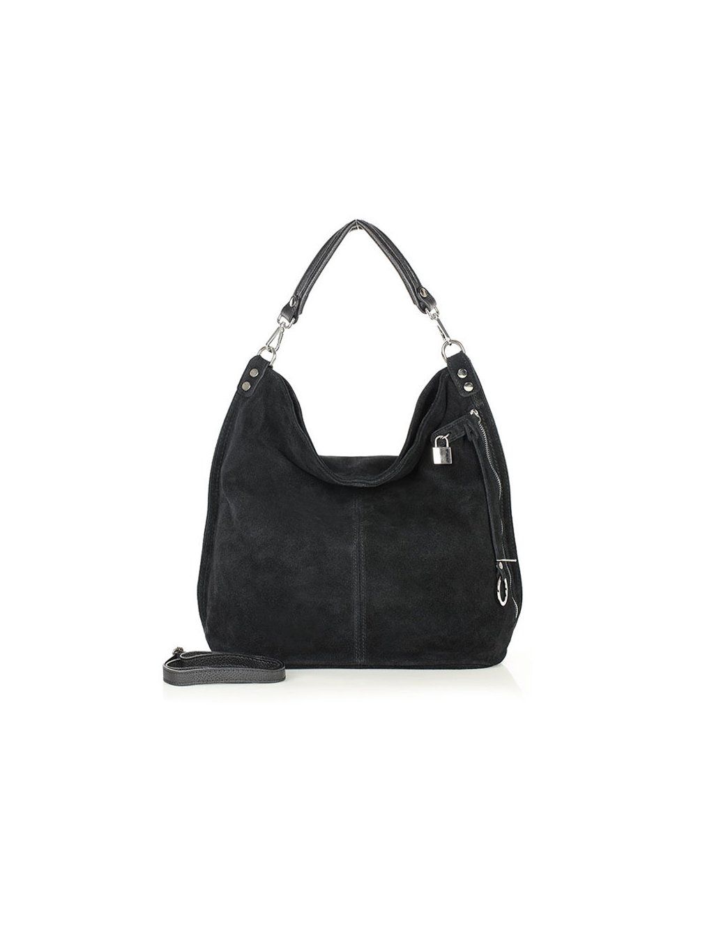 Dámská kožená kabelka Mazzini ušitá z italské broušené kůže. Prostorný vnitřek je tvořen dvěma velkými přihrádkami, oddělenými uzavíratelnou kapsou, dvě otevřené kapsičky a jednu kapsu na zip. Na venkovní čelní straně se nachází prostorná, leč téměř skrytá kapsa, zajištěná jednak zipem a za druhé okrasným, ale funkčním zámečkem. Taška se může nosit jak na předloktí, tak přes rameno, a to díky přídavnému dlouhému řemínku.