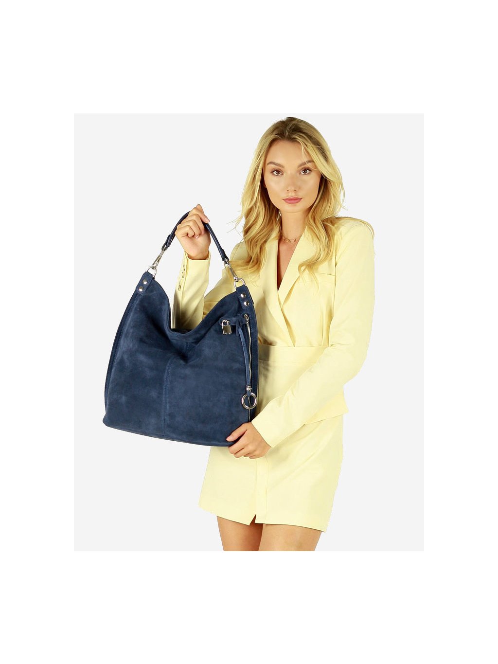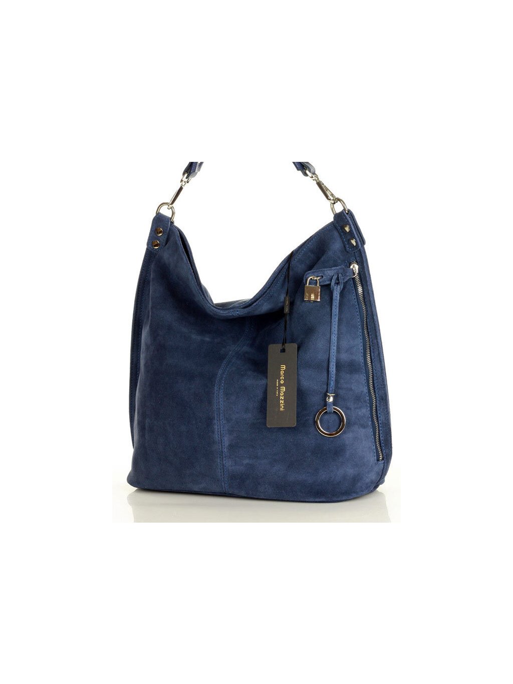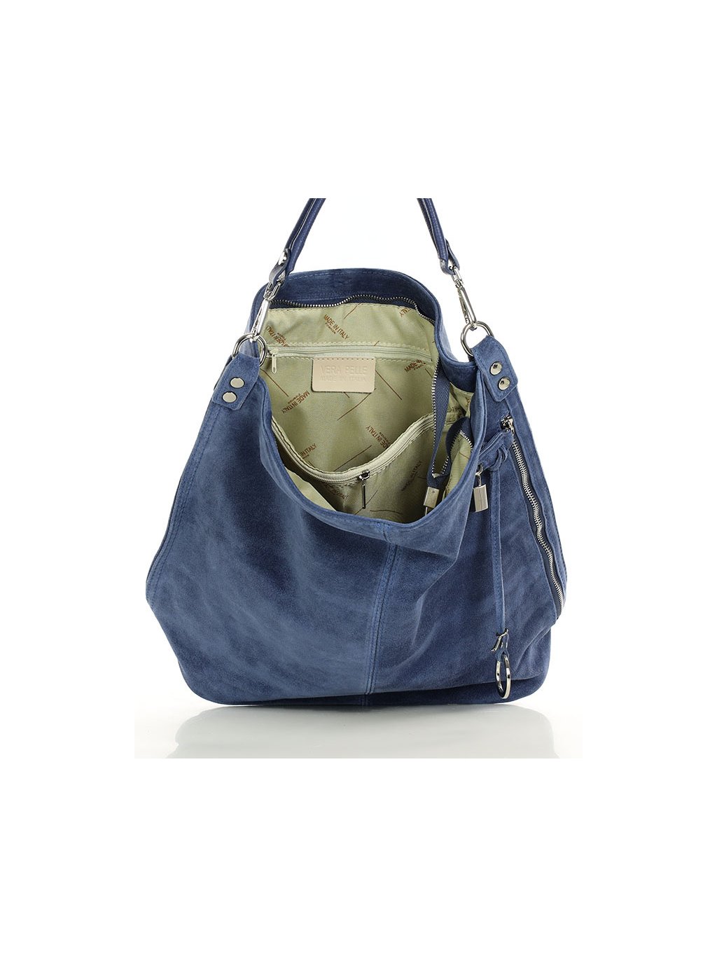 Dámská kožená kabelka Mazzini ušitá z italské broušené kůže. Prostorný vnitřek je tvořen dvěma velkými přihrádkami, oddělenými uzavíratelnou kapsou, dvě otevřené kapsičky a jednu kapsu na zip. Na venkovní čelní straně se nachází prostorná, leč téměř skrytá kapsa, zajištěná jednak zipem a za druhé okrasným, ale funkčním zámečkem. Taška se může nosit jak na předloktí, tak přes rameno, a to díky přídavnému dlouhému řemínku.