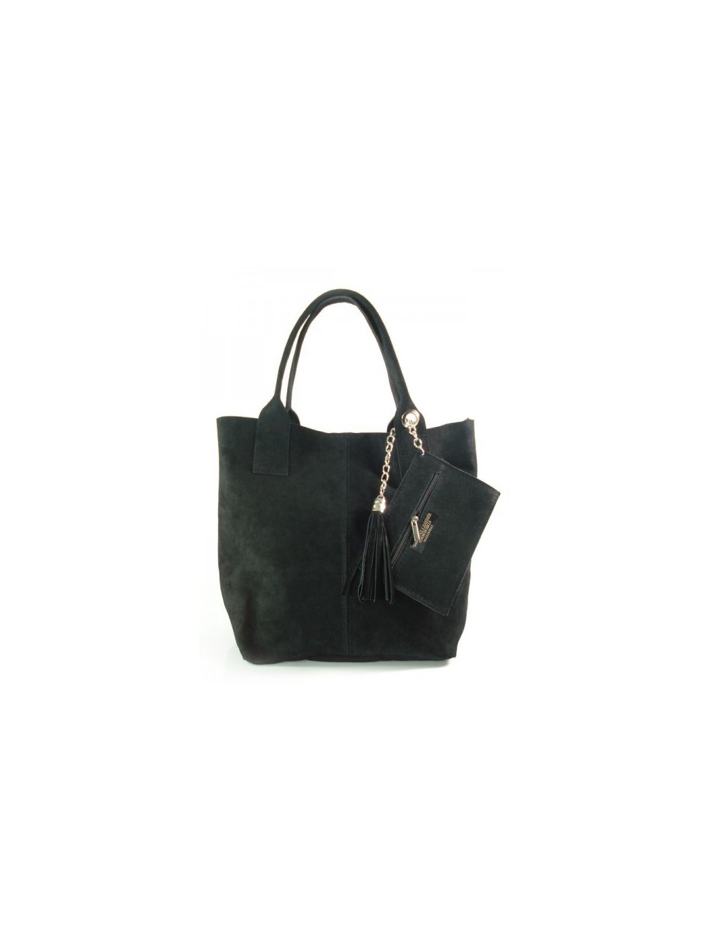 Kabelka z broušené kůže Vera Pelle W567G černá
