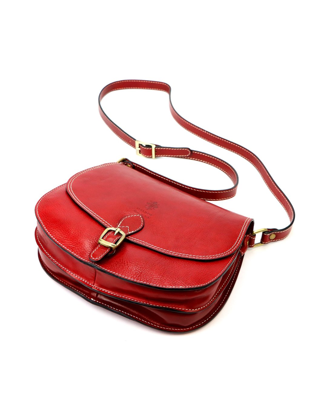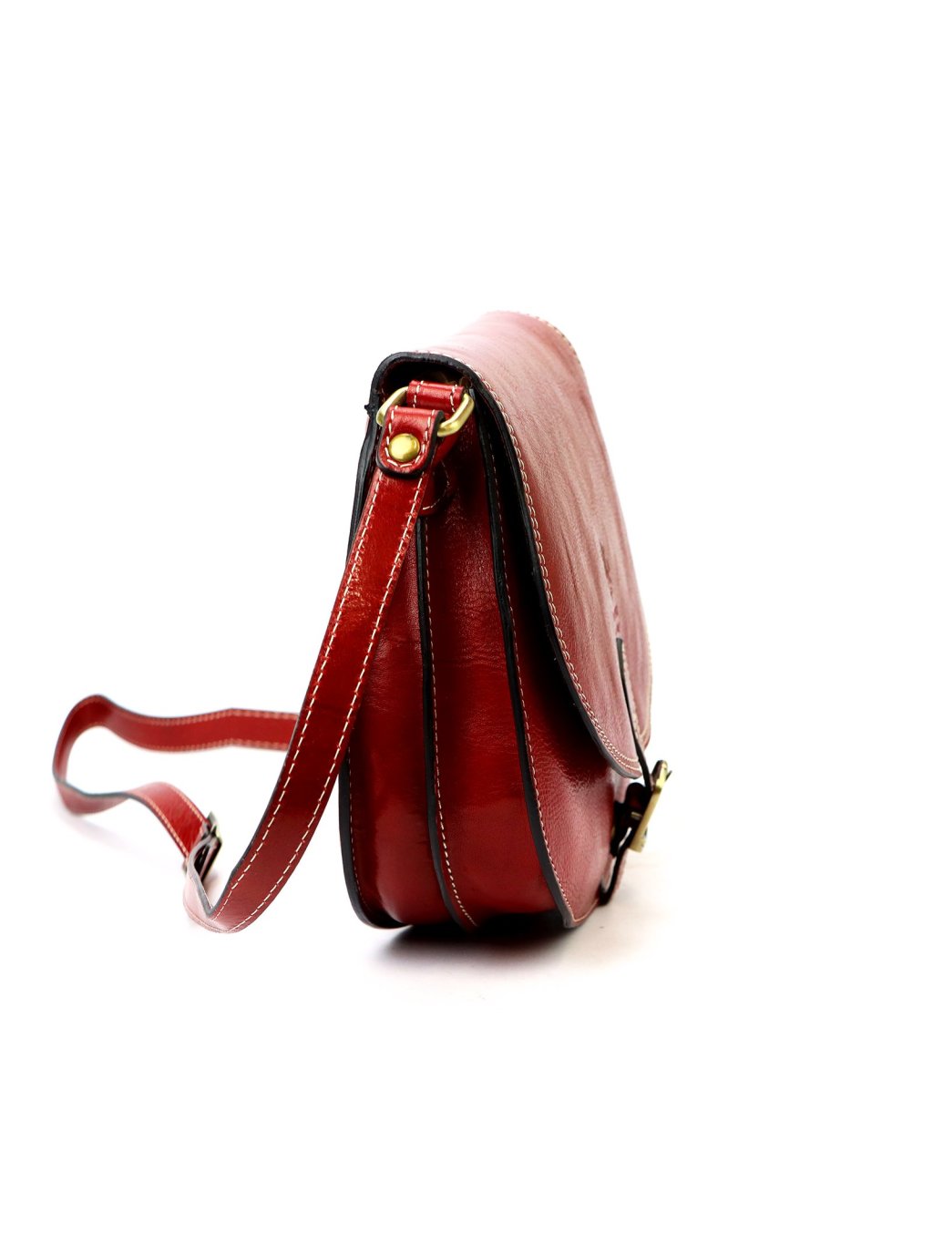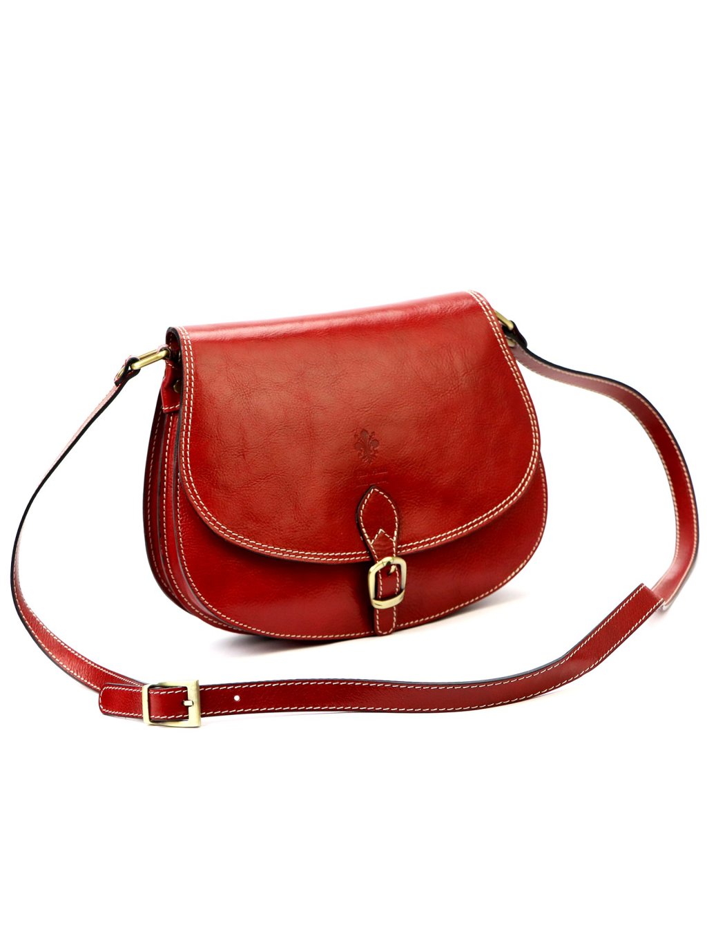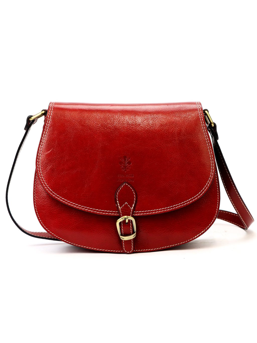Tato elegantní dámská ručně šitá kožená kabelka Florence v klasickém sedlovém tvaru.