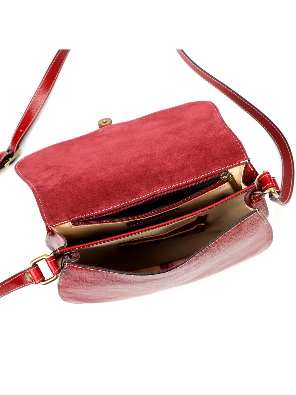 Tato elegantní dámská ručně šitá kožená kabelka Florence v klasickém sedlovém tvaru je vyrobená z prvotřídní italské lícové kůže, která je barvená tamponováním. Díky této technice má každá kabelka jedinečný vzhled a každý kus je originál. Kůže je pevná a dobře drží svůj tvar. Vnitřní prostor je prakticky členěný, nechybí kapsa na zip ani přihrádka na doklady. Zavírání zajišťuje klopa s magnetickým zapínáním. Díky nastavitelnému popruhu se kabelka pohodlně nosí přes rameno i křížem přes tělo. Je to ideální volba pro ženy, které hledají spojení praktičnosti a elegance v každodenním nošení.