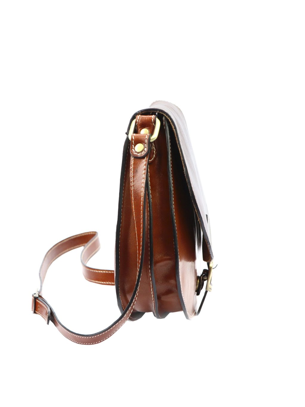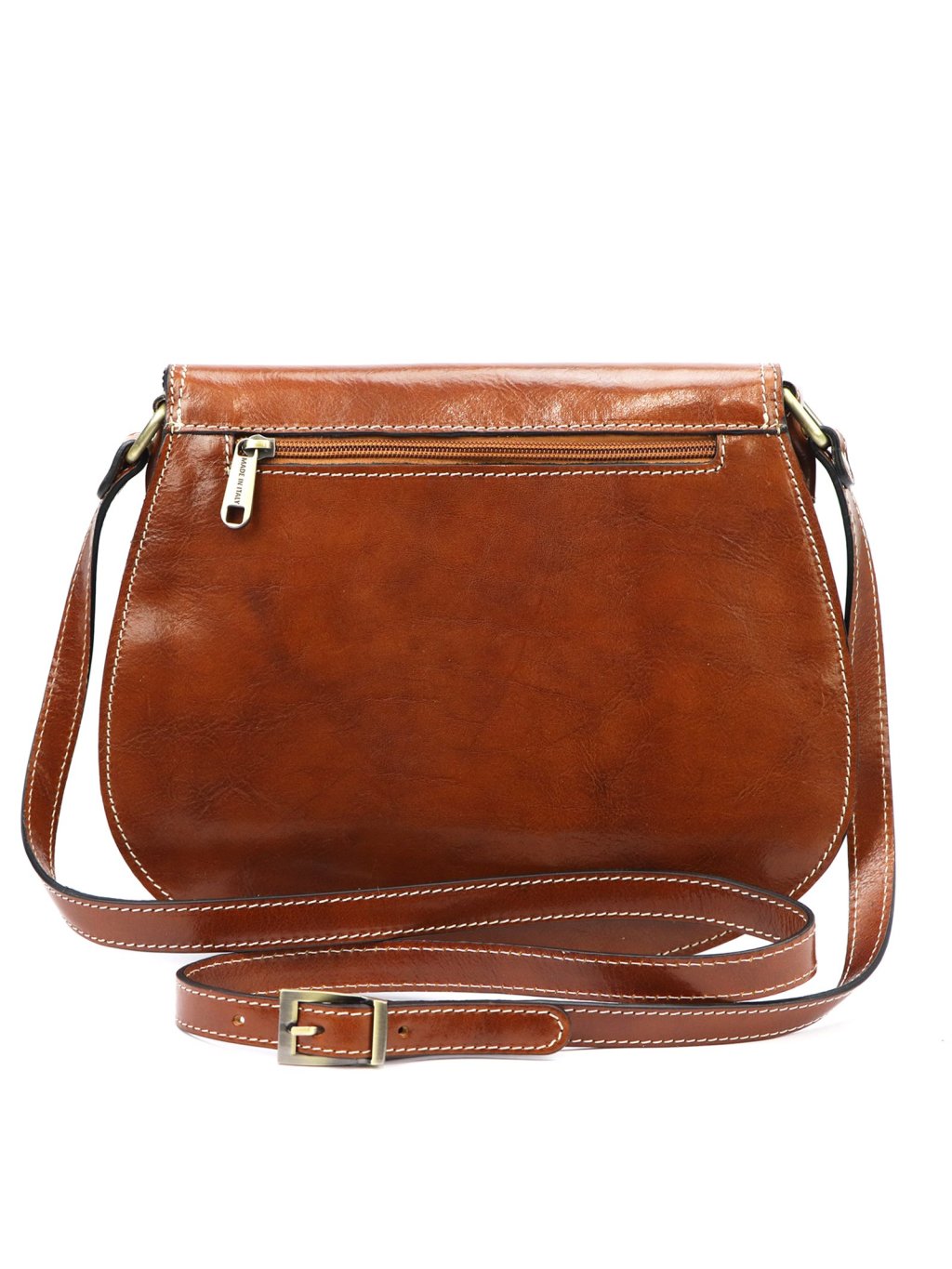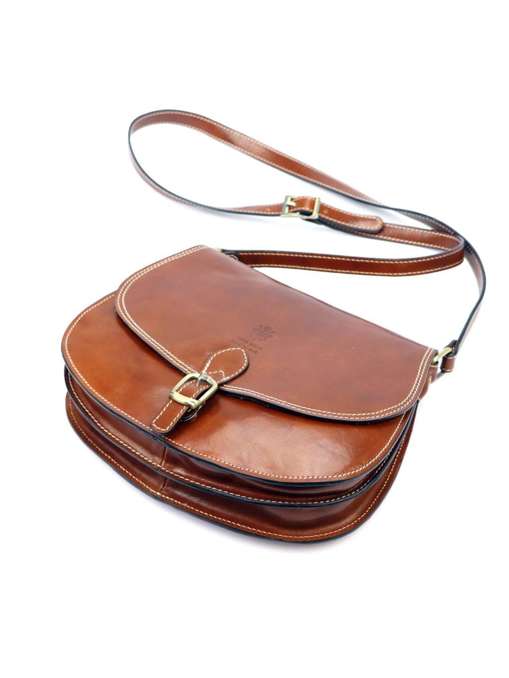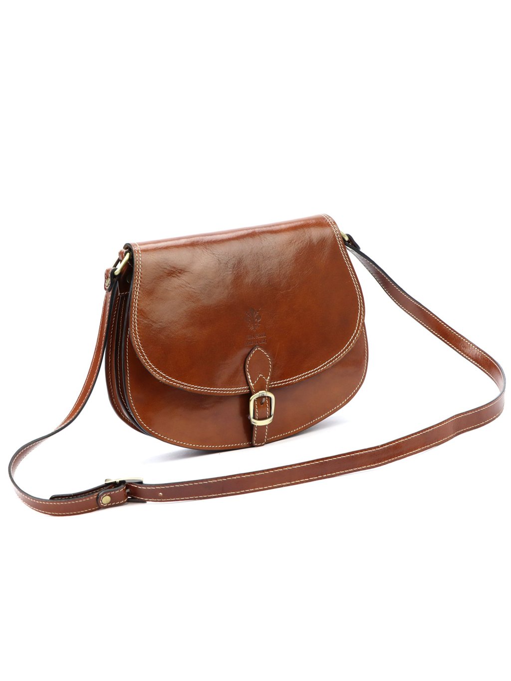 Tato elegantní dámská ručně šitá kožená kabelka Florence v klasickém sedlovém tvaru.