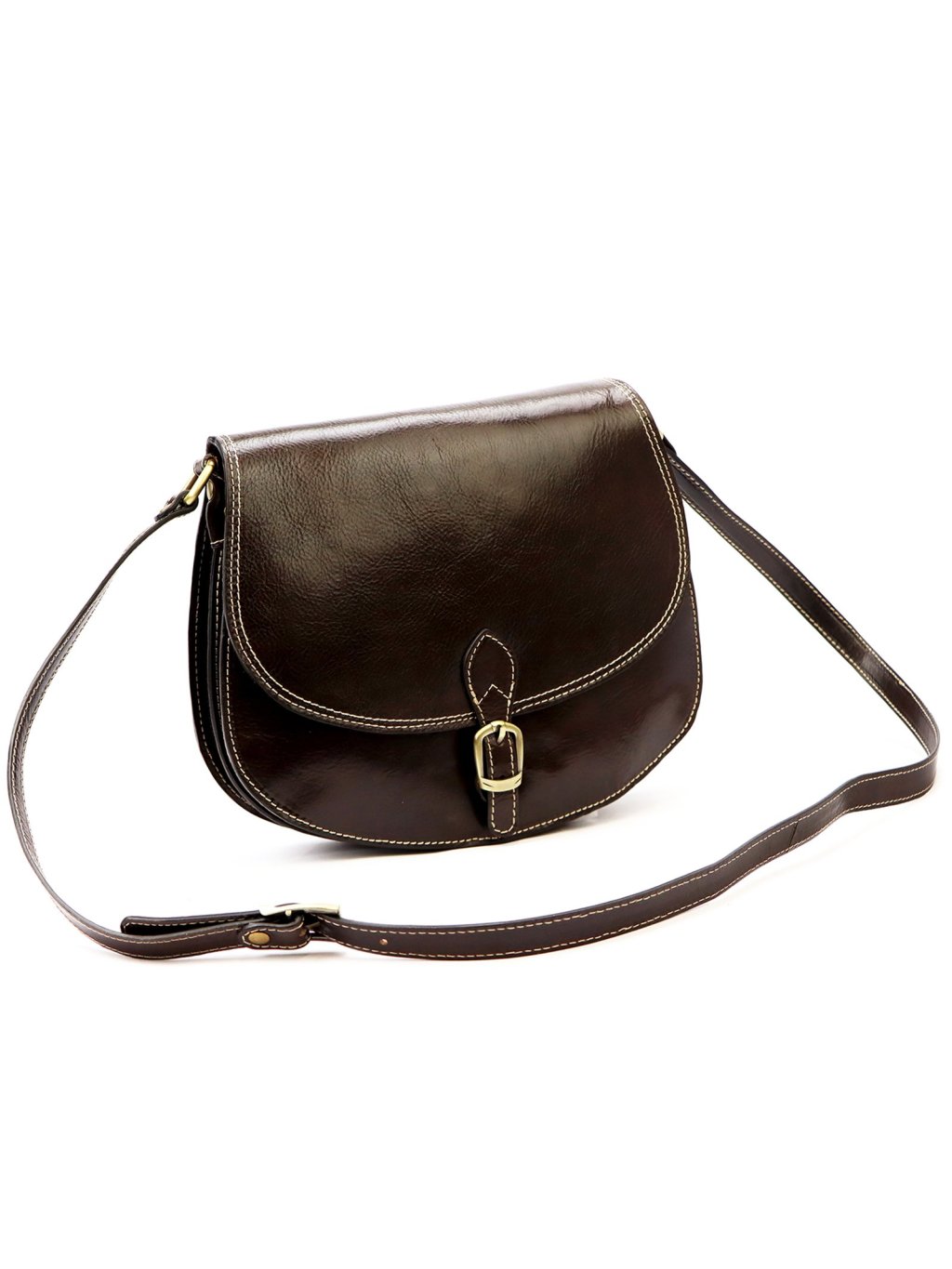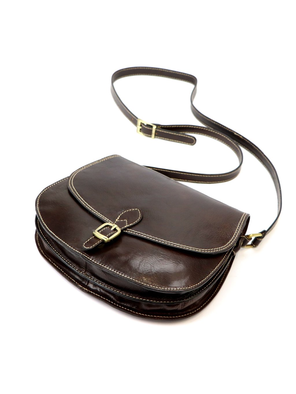 Tato elegantní dámská ručně šitá kožená kabelka Florence v klasickém sedlovém tvaru.